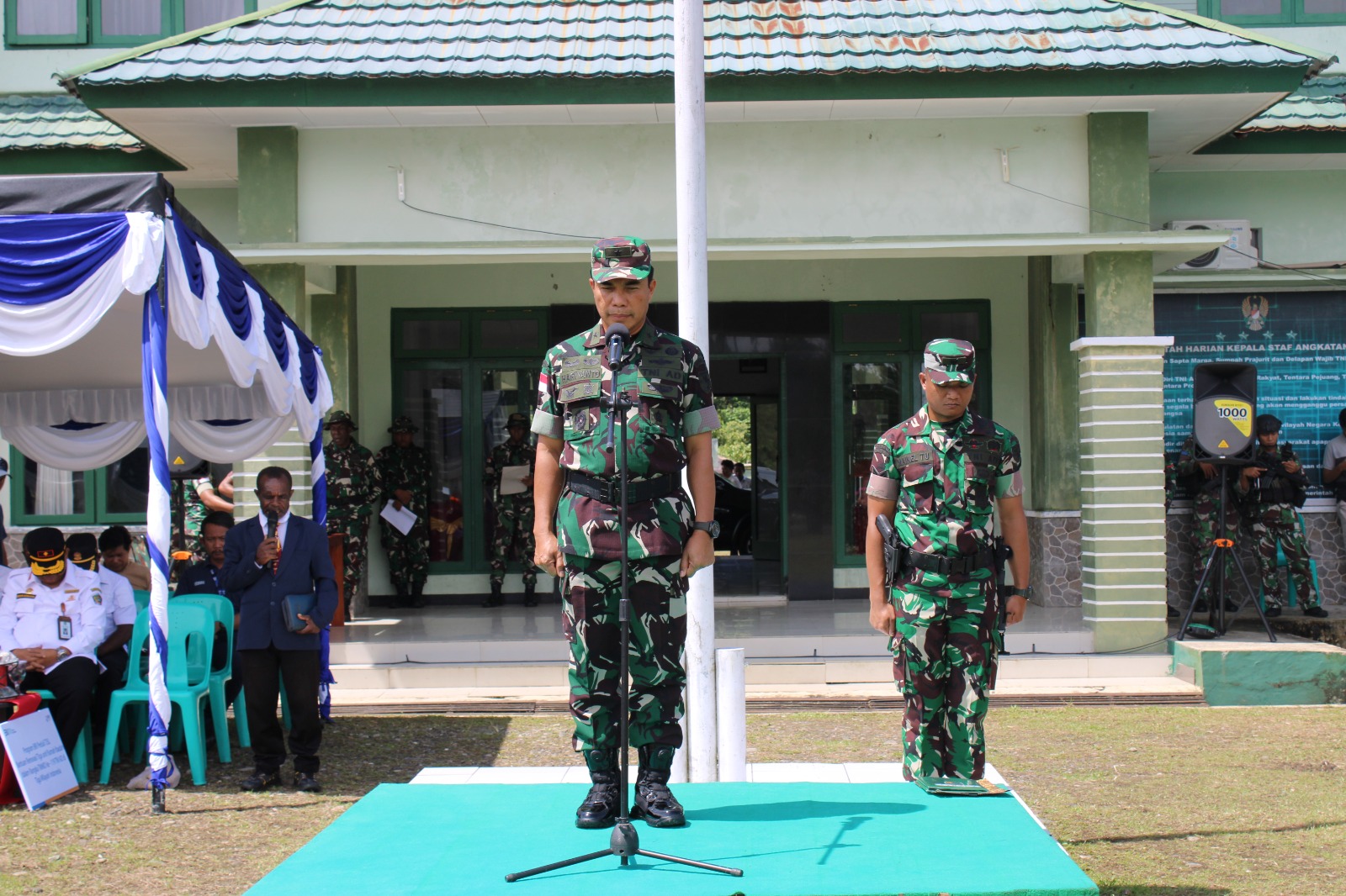 KeizalinNews.com Yahukimo — Kasdam XVII/Cenderawasih, Brigjen TNI Hariyanto, memimpin upacara penutupan TNI Manunggal Membangun Desa (TMMD) Ke-119 di wilayah Kodim 1715/Yahukimo, Papua, Rabu (20/03/2024). Upacara penutupan tersebut dihadiri oleh para pejabat terkait dan masyarakat setempat.