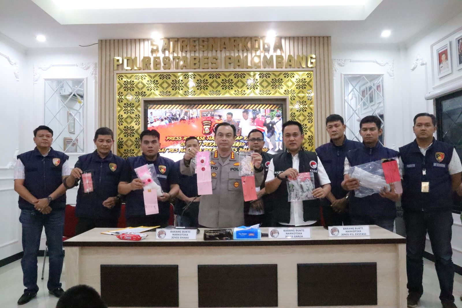 Keseluruhan barang bukti yang berhasil disita jajaran Polrestabes Palembang kurun waktu operasi pekat 2024 yakni 585,60 gram shabu, 77 butir ekstasi, dan 200 gram ganja.