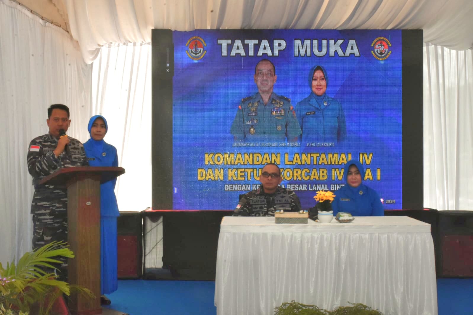 KeizalinNews.com Bintan — Danlantamal IV Batam Laksamana Pertama TNI Tjatur Soniarto CHRMP., M.Tr. Opsla., didampingi Ketua Korcab IV DJA I Ny. Erni Tjatur Soniarto, melaksanakan Tatap Muka dengan Prajurit Lanal Bintan beserta anggota Jalasenastri Cabang 5 Korcab IV DJA I, bertempat di Halaman Mako Lanal Bintan, Jalan Jenderal Sudirman No.10, Tanjung Uban Kota, Kecamatan Bintan Utara, Kabupaten Bintan, Rabu (20/03/2024).