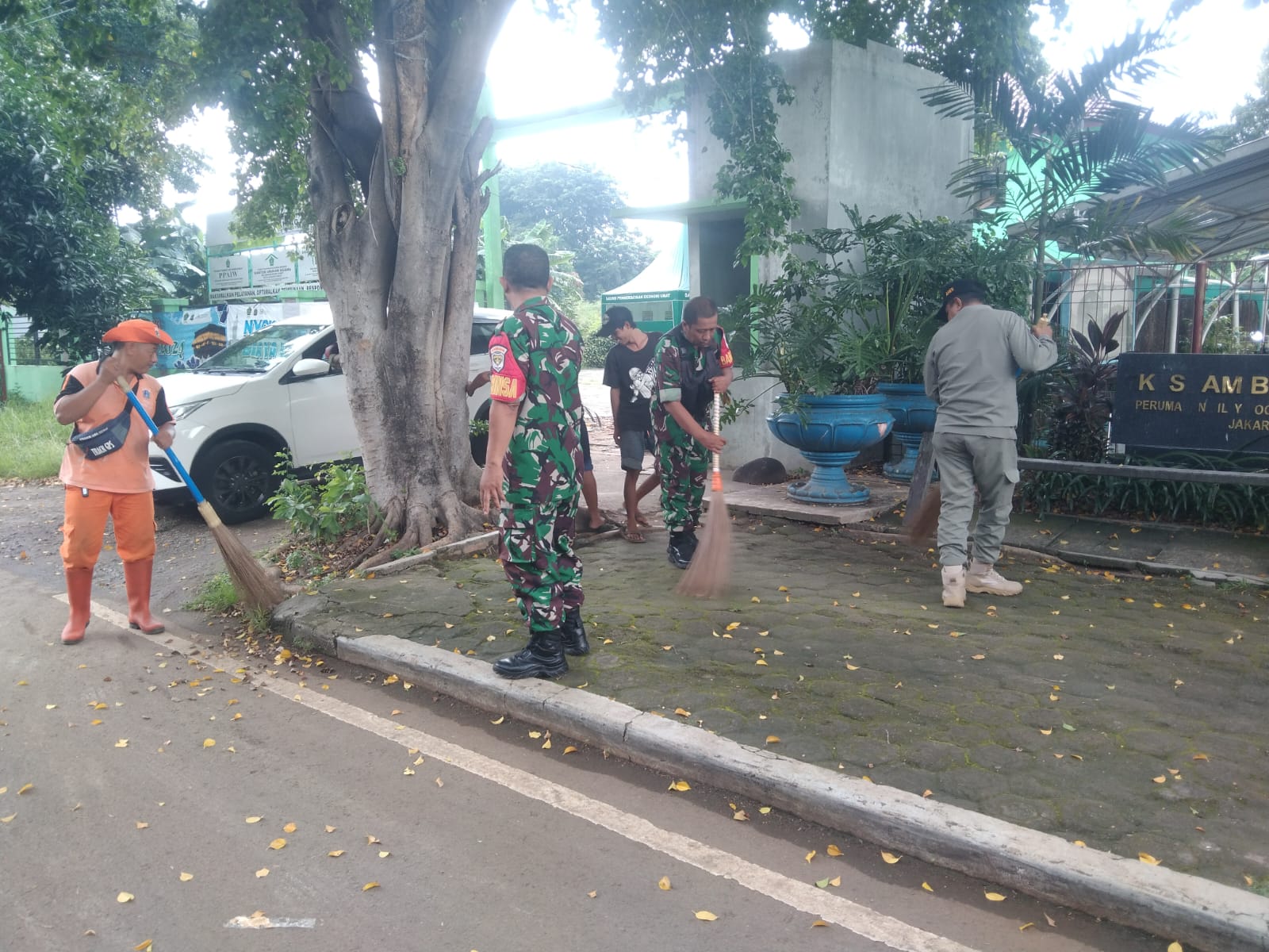 Babinsa Koramil Duren Sawit Bersama PPSU dan Warga Bersihkan Lingkungan