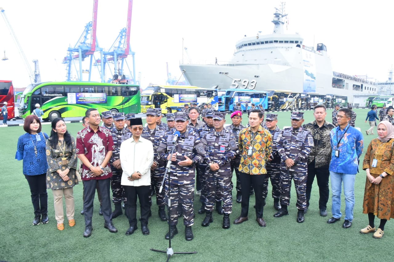 KeizalinNews.com Jakarta — Komandan Pangkalan Utama TNI Angkatan Laut (Danlantamal) III Jakarta Brigjen TNI (Mar) Harry Indarto, S.E., M.M. menghadiri acara pelepasan mudik gratis bersama TNI Angkatan Laut menggunakan KRI Banda Aceh (BAC)-593 dan bus dalam rangka menyambut Hari Raya Idul Fitri 1445 H/2024 M, yang dilepas oleh Kepala Staf Angkatan Laut Laksamana TNI Dr. Muhammad Ali, S.E., M.M., M.Tr.Opsla. dan dihadiri Wakasal Laksdya TNI Erwin S. Aldedharma, S.E., M.M., M.Sc. bertempat di Mako Kolinlamil, Jakarta Utara, Jumat (05/04/2024)