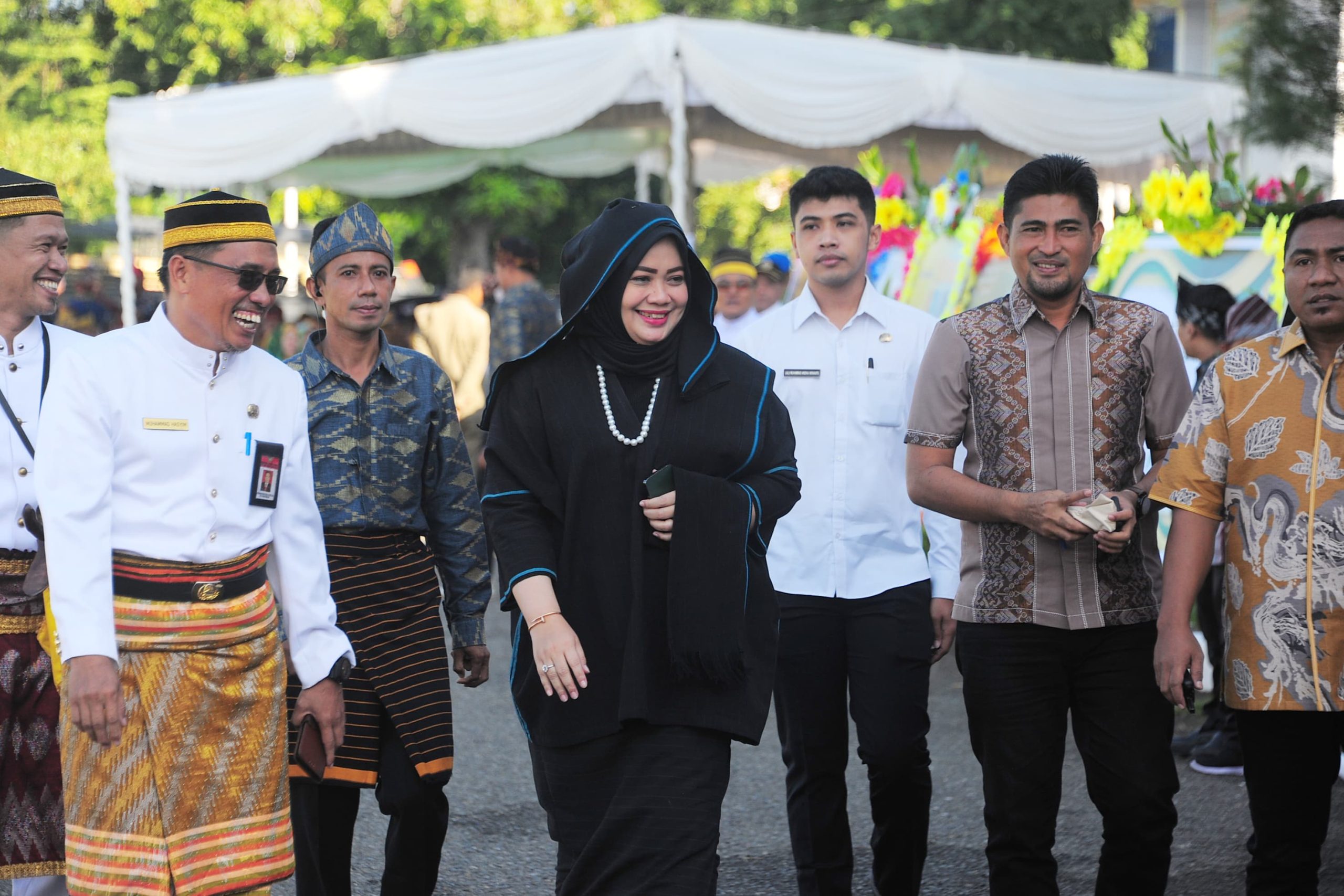 Berbusana Adat Donggo, Bupati Bima Hadiri Upacara HUT Kota Bima