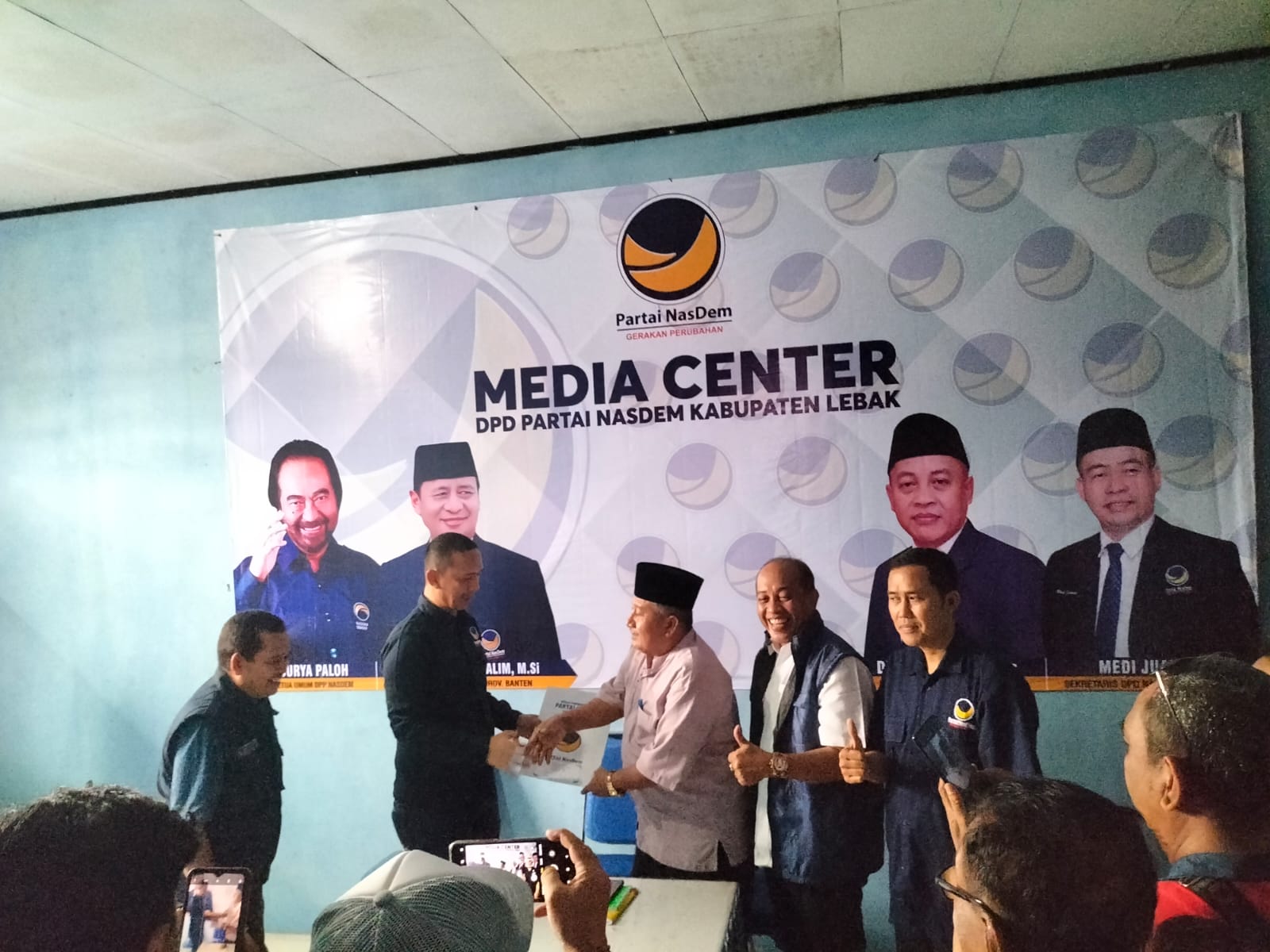 Sesudah proses pendaftaran dan mengambilan formulir di kantor DPD partai Nasdem Kabupaten Lebak dan juga akan melakukan konferensi Pres pengurus DPD bersama Tim di lima partai Nasdem Lebak serta Bakal Calon Bupati H. Akhmad Jajuli, sampai selesai,