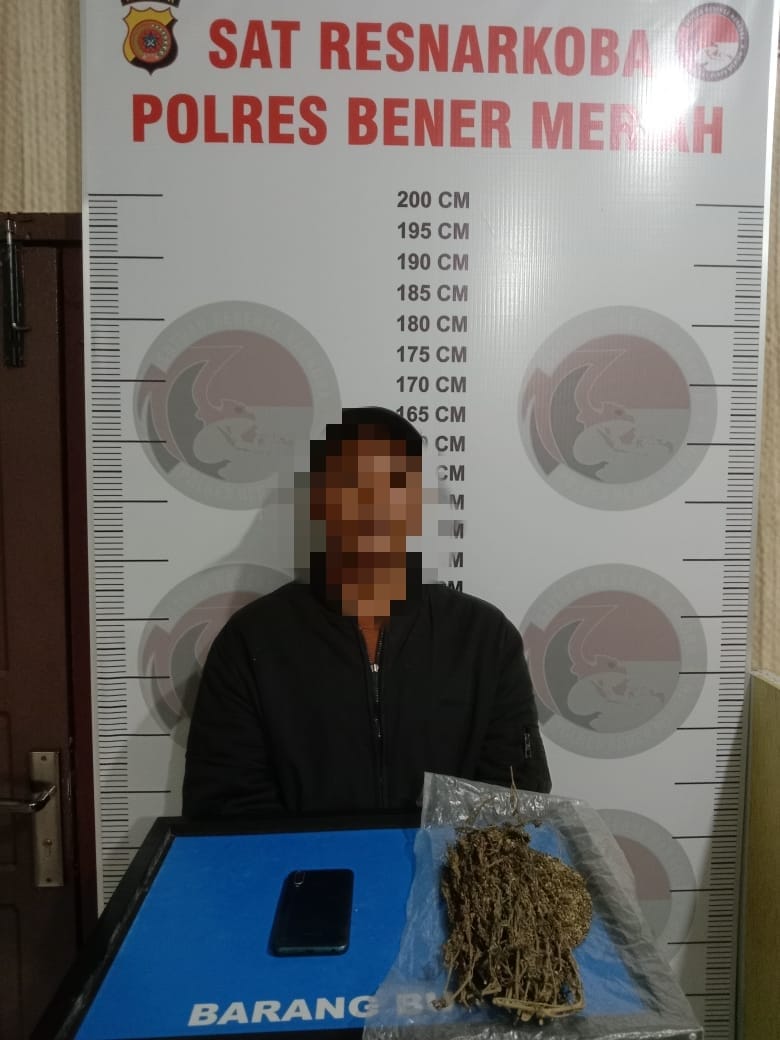 Keizalinnews.com | Bener MERIAH-: Satuan Reserse Narkoba Polres Bener Meriah, berhasil mengamankan satu orang pria warga Kampung Bener Ayu Kecamatan Wih Pesam Kabupaten Bener Meriah, yang diduga menyalahgunakan narkotika jenis ganja.