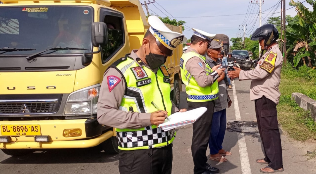 Tampak di lokasi kejadian. Petugas kepolisian unit lantas begitu sigap membantu korban dan mengatur lalulintas Agar tidak macet. Unit Lalu lintas polres Aceh timur dibantu Oleh petugas dari Polsek Nurussalam.