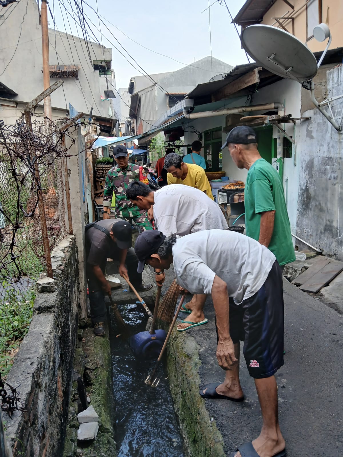 Babinsa Koramil Jatinegara Bersama Warga melakukan pembersihan, pengerukan sampah yang ada di saluran air di sepanjang jalan Pedati agar menjadi bersih.
