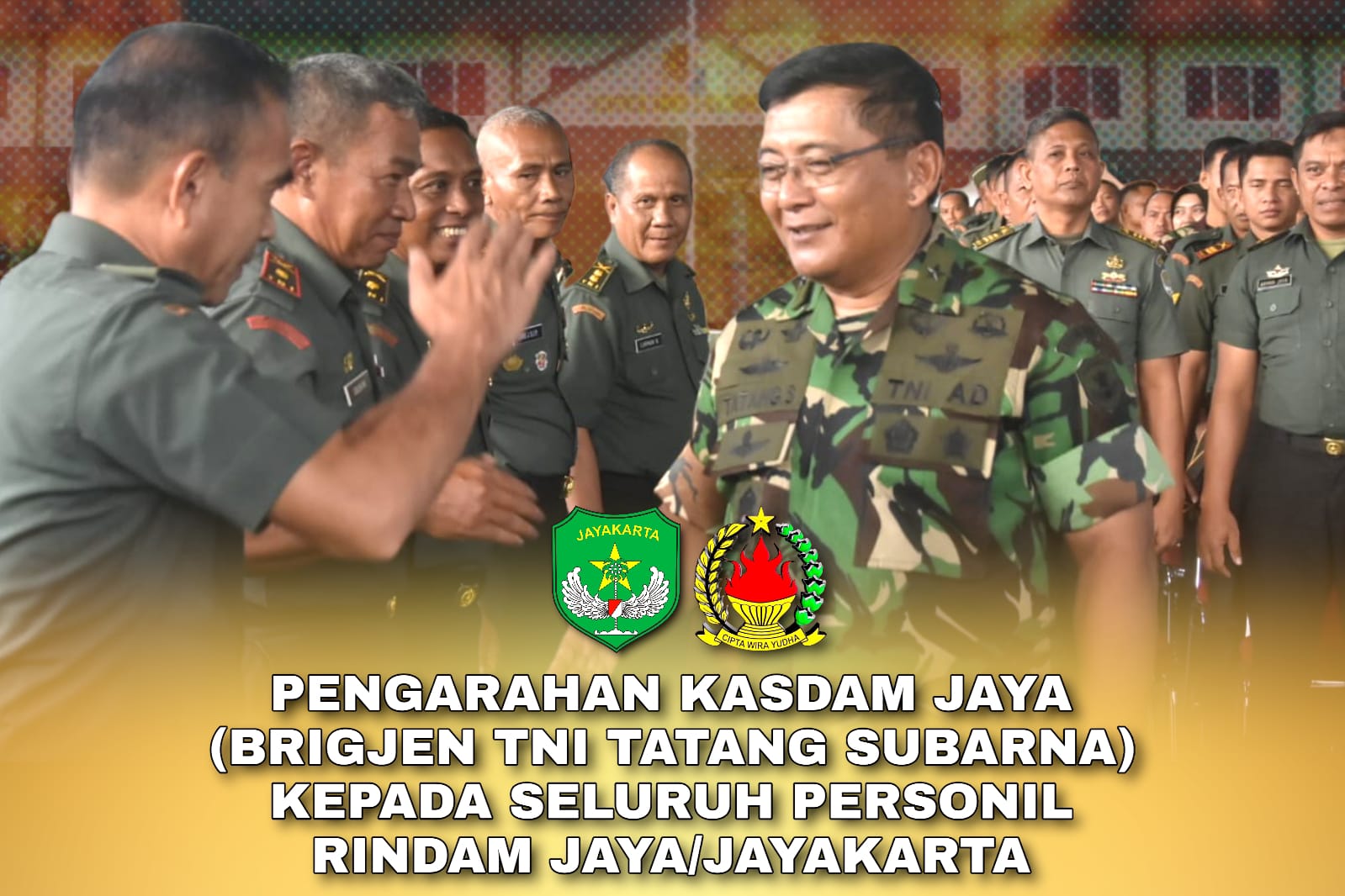 Selanjutnya, Kasdam Jaya juga menyampaikan agar menjaga kekompakan demi terselenggaranya pelaksanaan tugas-tugas disatuan Rindam Jaya sebagai lembaga pendidikan TNI AD.