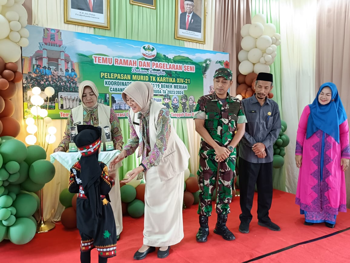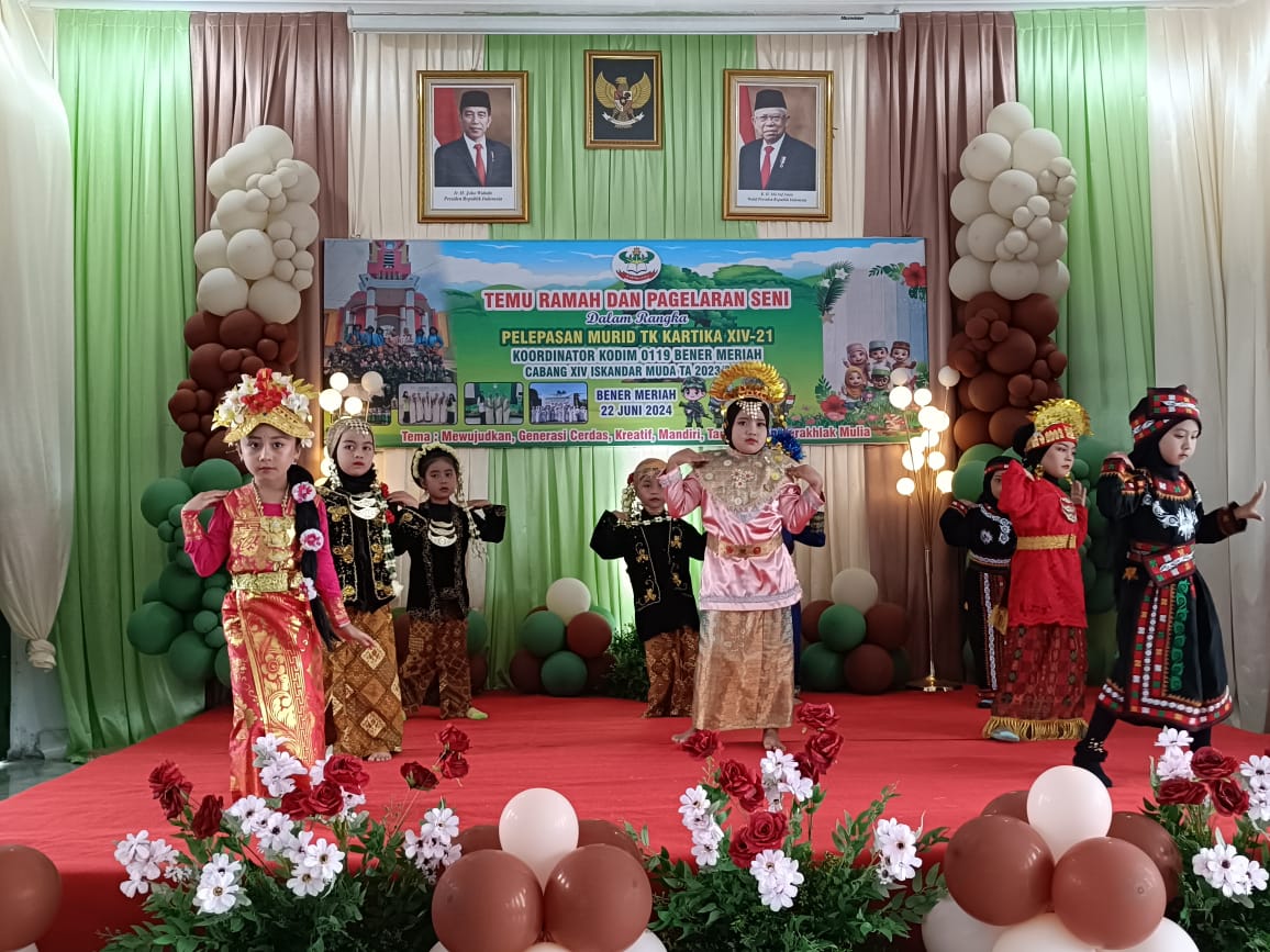 Keizalinnews.Online|REDELONG-: Akhir tahun ajaran 2023/2024, TK Kartika Cabang XIV-21 Koordinator Kodim 0119/BM menggelar temu ramah dan pagelaran seni dalam rangka pelepasan murid di Aula Makodim 0119/BM Jln. Jalur Dua Desa Wonosobo, Kecamatan Wih Pesam Kabupaten Bener Meriah, Sabtu (22/06/2024).