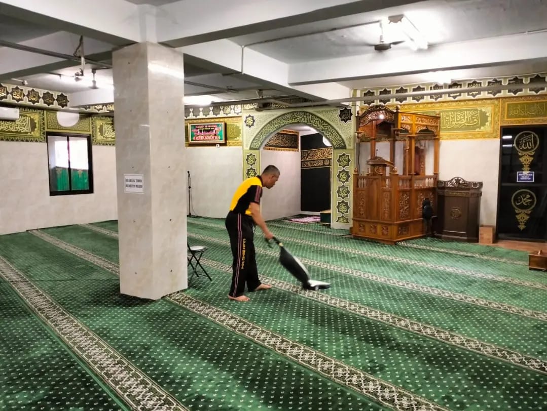 Kegiatan Bakti Religi kemudian dilanjutkan dengan bersih-bersih di Masjid Al Hafiz Plaza Atrium Pondok Gede yang dilakukan oleh Personil Polsek Pondok Gede dan Marbot masjid. Kegiatan ini merupakan bentuk kepedulian Polri terhadap tempat ibadah dan sebagai wujud nyata pengabdian kepada masyarakat.