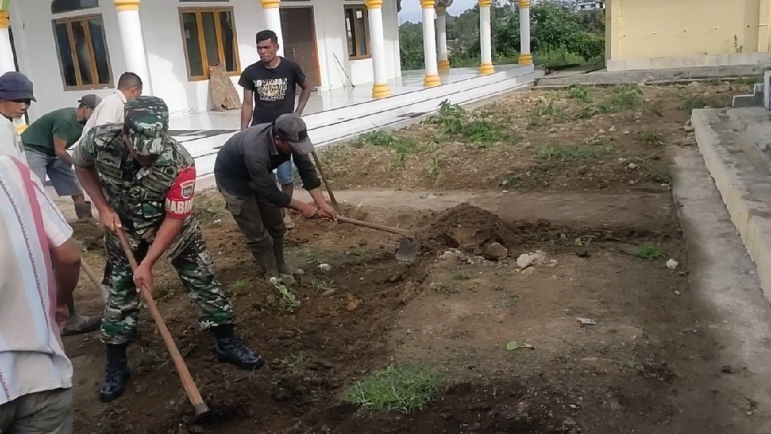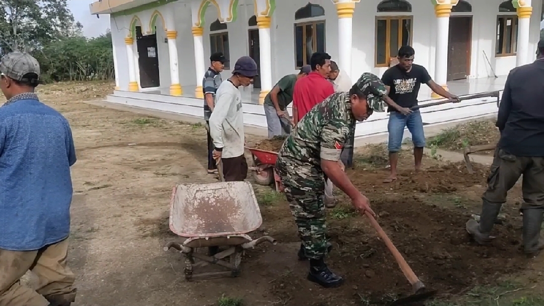 Keizalinnews.Online|REDELONG-: Atas dasar keikhlasan dan semangat pengabdian kepada masyarakat dalam hal menjaga kebersihan lingkungan dan prasarana ibadah, Koptu Suparjo Babinsa Koramil 04/PRG Kodim 0119/BM melaksanakan gotong royong bersama masyarakat di Masjid Baiturrahim Annur Desa Gemasih, Kecamatan Pintu Rime Gayo, Kabupaten Bener Meriah, Jumat (28/06/2024).