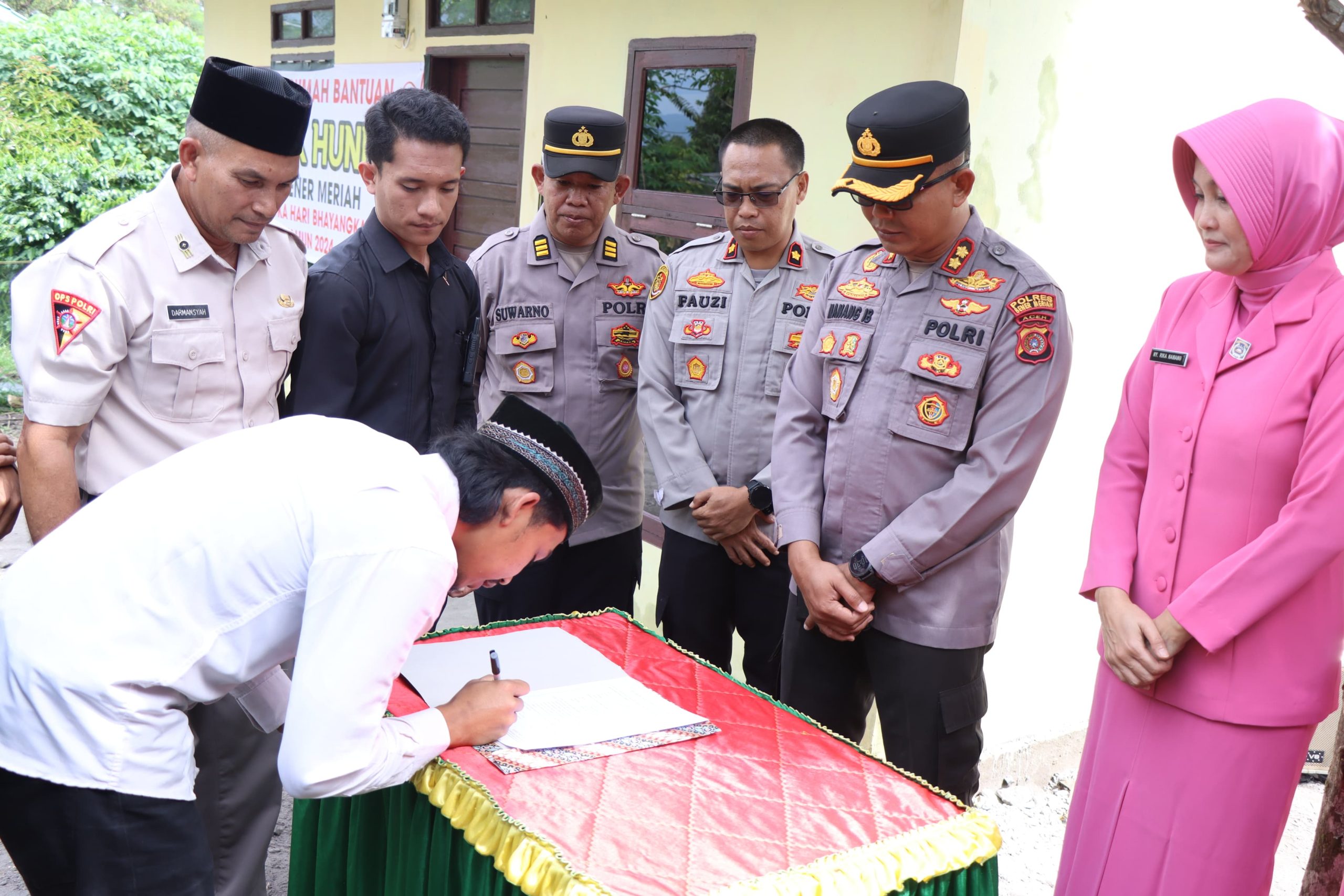 Keizalinnews.Online|Redelong-: Dalam rangka memperingati hari Bhayangkara ke-78 Tahun 2024, Kapolres Bener Meriah AKBP Nanang Indra Bakti, S.H., S.I.K didampingi Pejabat Utama Polres Bener Meriah, Ketua Bhayangkari Cabang Bener Meriah beserta aparatur Kampung meresmikan rumah bantuan layak huni untuk masyarakat kurang mampu, bertempat di Kampung Blang Paku, Kecamatan Wih Pesam, Kabupaten Bener Meriah, Jumat 28 Juni 2024.
