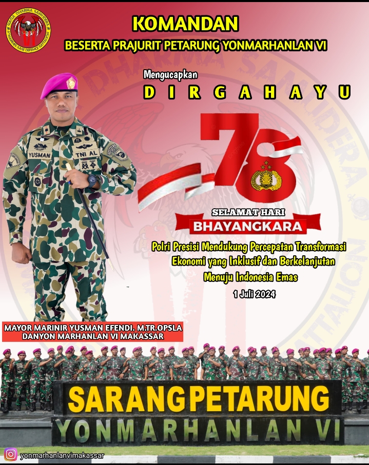 Ucapan selamat juga datang dari Mayor Marinir Yusman Efendi.M.TR. Opsla Danyon Marhanlan VI Makassar beserta Prajurit petarung Yonmarhanlan Makassar, Senin (1/7/2024)