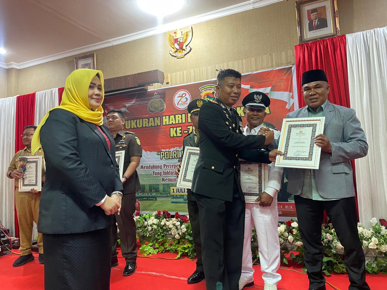 Dalam acara tersebut dilakukan pemotongan tumpeng yang dilanjutkan dengan penyerahan sejumlah penghargaan kepada aparat Polri dan mitra kerja.