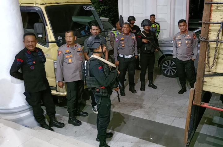 Personil Polres Pidie Jaya dan Brimob terus melaksanakan pengamanan hingga dini hari dan mengawal kotak suara ke Gudang Logistik KIP Pidie Jaya.