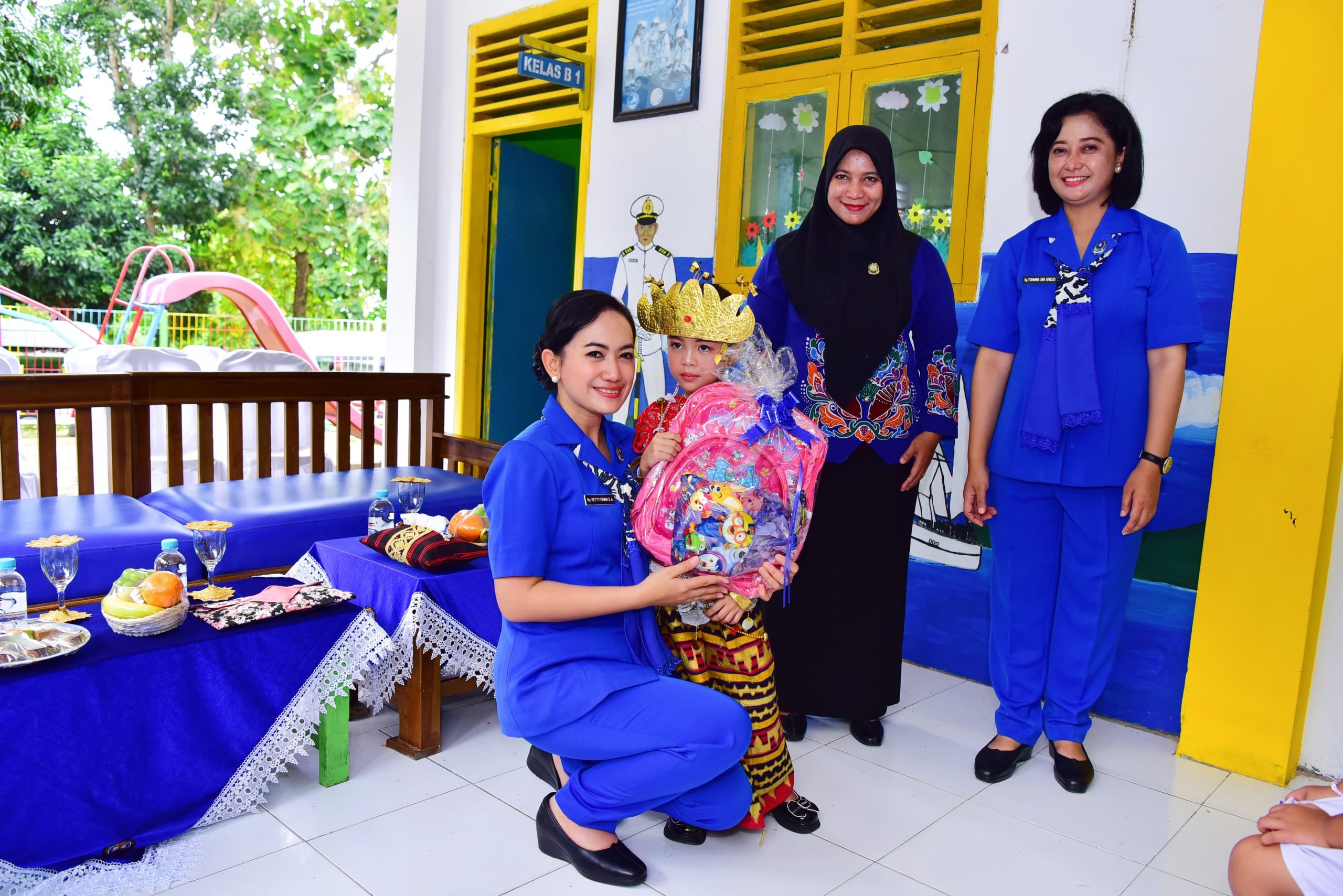KeizalinNews.Online Lampung — Ketua Koordinator Cabang (Korcab) III Daerah Jalasenastri Armada (DJA) I Ny. Neneng Harry Indarto selaku pengawas cabang Jakarta Yayasan Hang Tuah (YHT) mendampingi Ketua Pengawas Yayasan Hang Tuah Ny. Ketty Erwin S. Aldedharma melaksanakan kunjungan kerja di TK Hang Tuah Perwakilan Lampung 1, Rabu (10/07/2024).