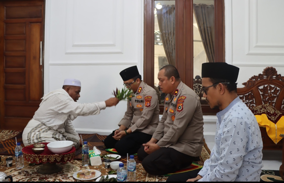 Aceh Timur-NAD,Kapolres Aceh Timur Polda Aceh AKBP Nova Suryandaru, S.I.K. bersama Wakapolres Kompol Iswar, S.H. pada Jum’at, (19/07/2024) dipeusijuk (tepung tawar) oleh Tgk.H. Armis Musa, S.Ud, MPd. (Ayah Armis) Pimpinan Dayah Al-Madinatul Munawwarah Al-Waaliyyah Al-Aziziyah (AMAL) Desa Beusa Seberang, Kecamatan Peureulak Barat, Kabupaten Aceh Timur.