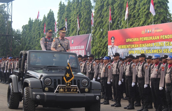 KeizalinNews.Com,Makassar (Sulsel)–Wakapolda Sulsel Brigjen Pol. Nasri, S.I.K., M.H., didampingi Pejabat Utama Polda Sulsel Pimpin Upacara Pembukaan Pendidikan Pembentukan Bintara Polri Gel.II T.A. 2024 di Lapangan Upacara SPN Polda Sulsel, Senin (22/07/24).