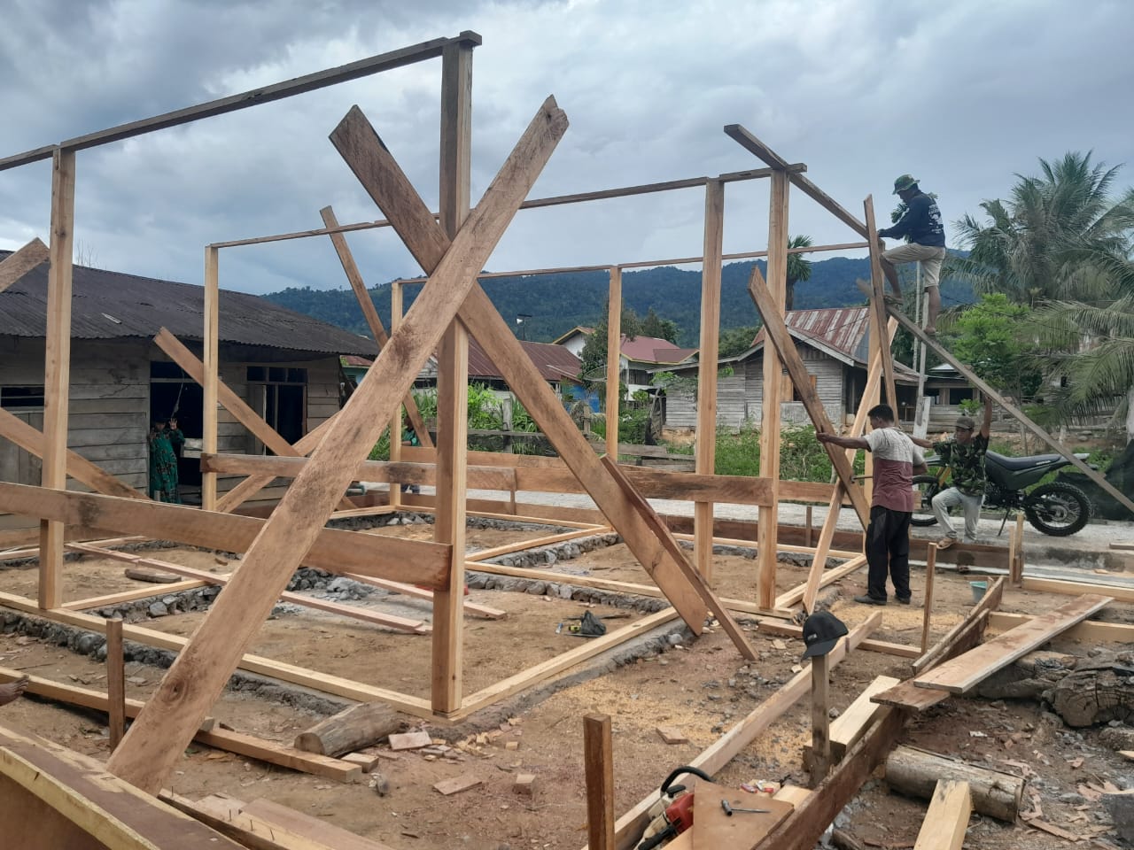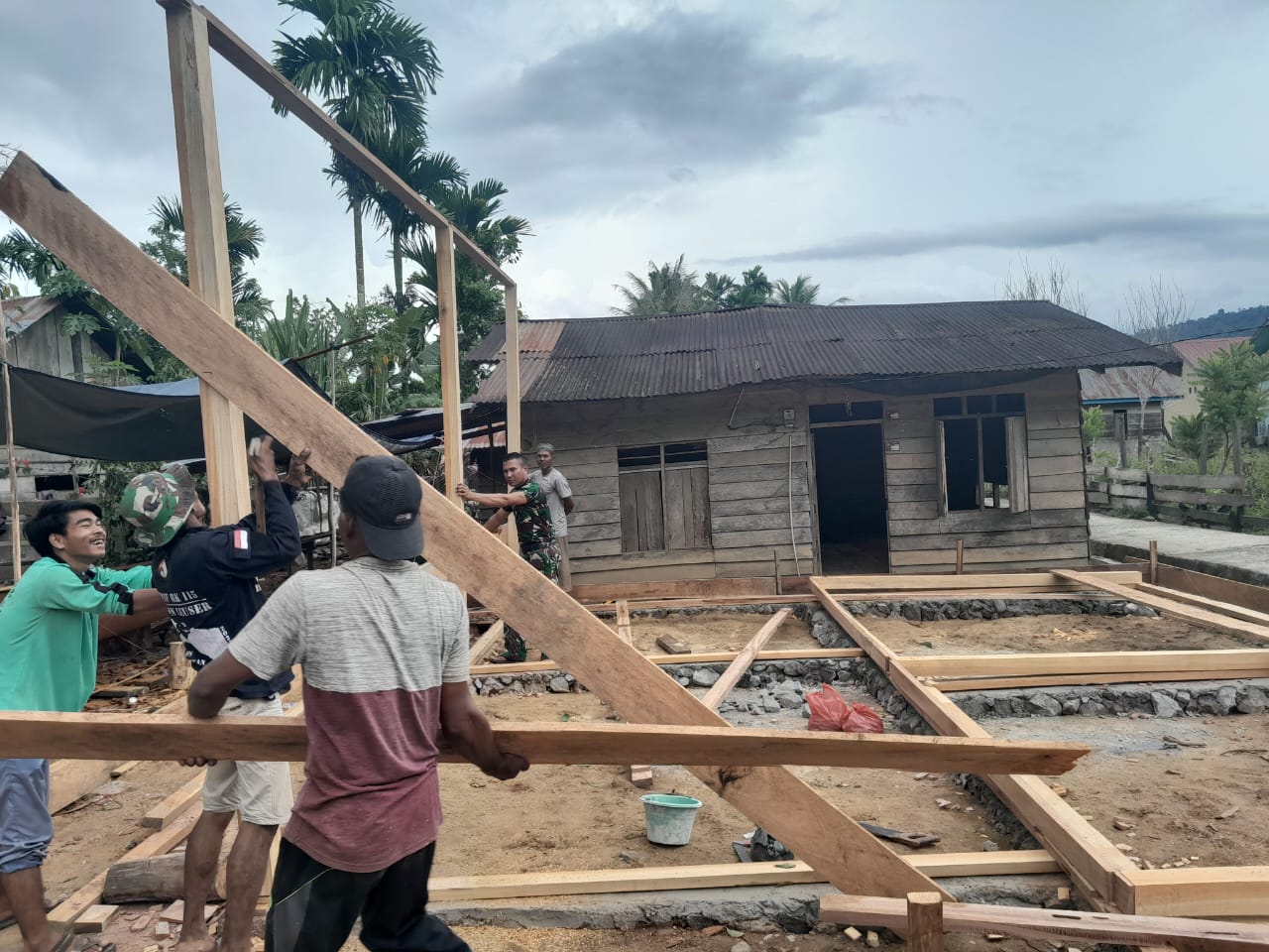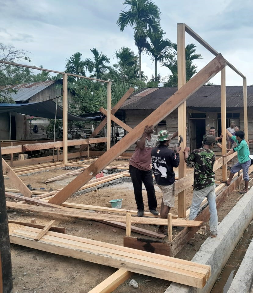 Dan Satgas TMMD Ke-121 Kodim 0119/BM Letkol Kav Ino Dwi Setyo Darmawan, S.E.,M.Han., saat ditemui mengatakan, saat ini proses pembangunan RTLH sudah memasuki tahapan pemasangan tiang rumah yang terbuat dari kayu.