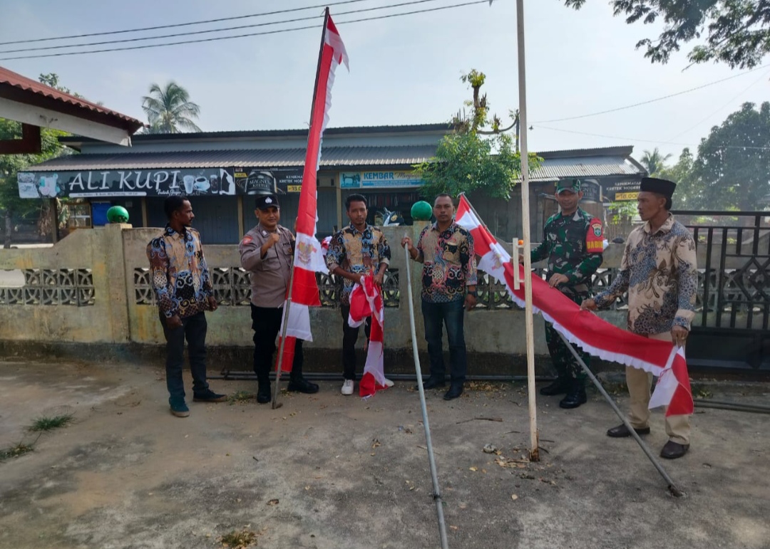 Pada kesempatan itu, Roelly bersama Nurdin juga membantu perangkat Gampong Matang Pineung memasang bendera merah putih dan umbul umbul di depan dan seputar kantor Keuchik Gampong Matang Pineung. Jum’at, (02/08/2024) pagi.