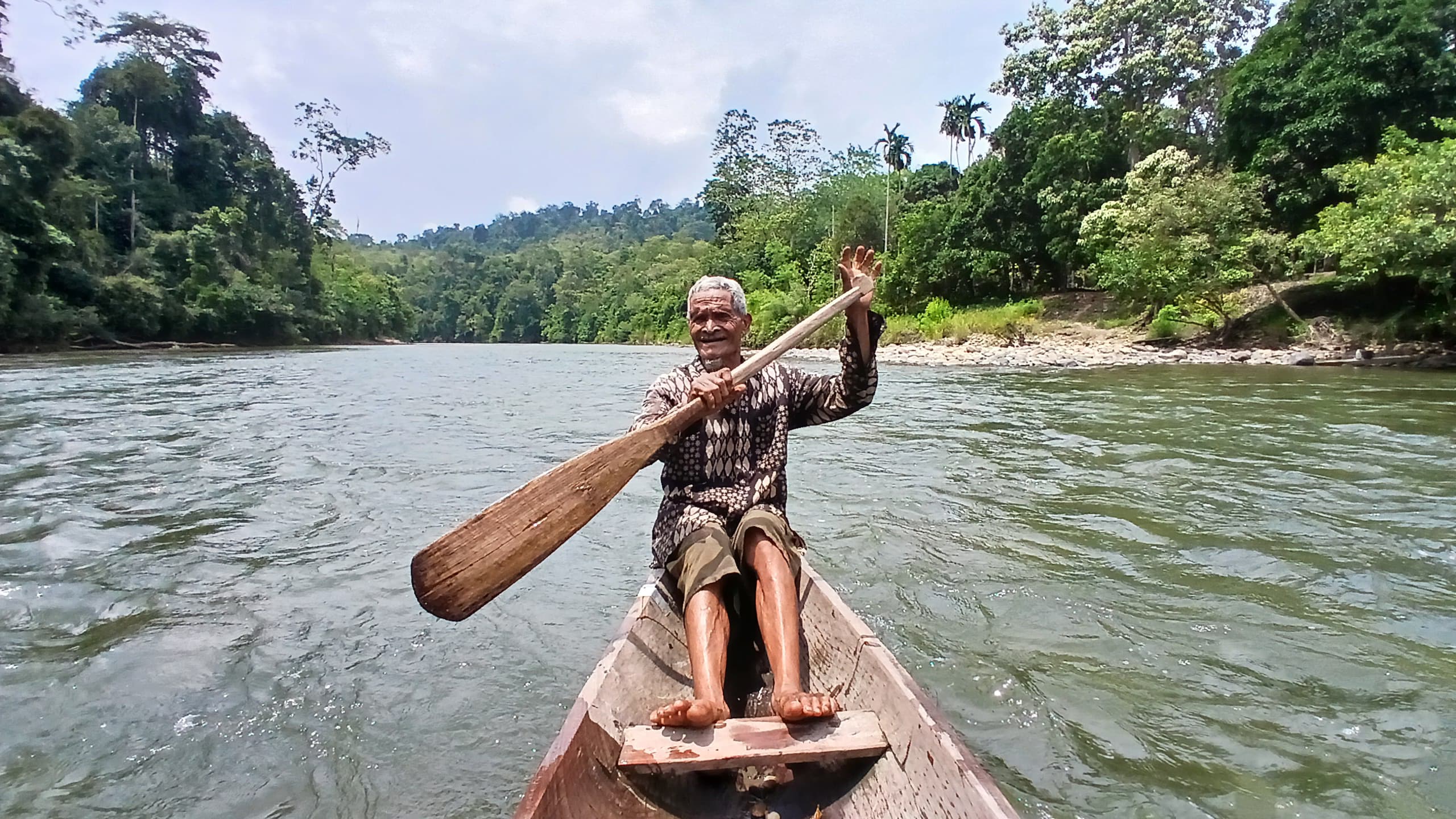 Saat awak media” meninjau lokasi ke. desa tersebut terlihat orang tua sedang mendayung perahunya seorang diri, untuk pergi melihat tanamannya yang ada di kebun miliknya.”-(M,s)