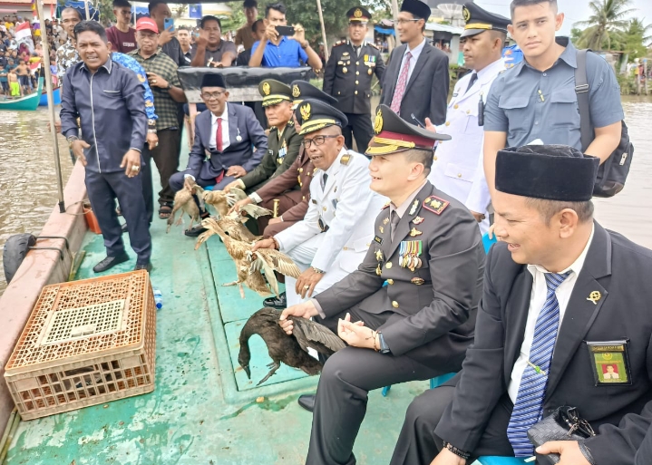 Kapolres AKBP Ahmad Faisal Pasaribu turut ambil bagian dalam kegiatan ini dengan melepas bebek secara langsung, menambah keceriaan dan mempererat hubungan antara peserta dan penonton.