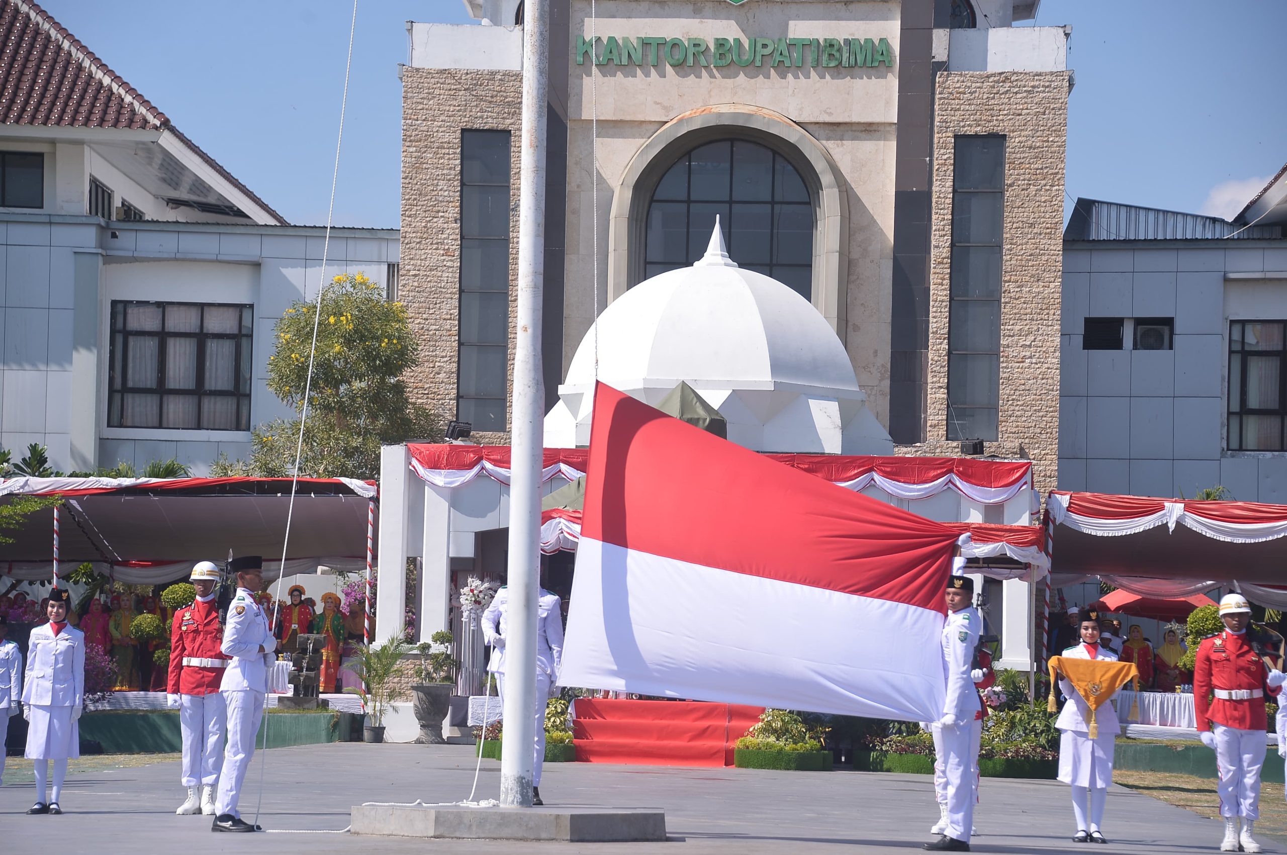 Penekanan tombol sirine oleh Bupati Bima Hj.Indah Dhamayanti Putri,SE.M.IP yang bertindak selaku Inspektur Upacara (Irup) menandai peringatan Detik-detik Proklamasi Kemerdekaan RI yang dilanjutkan dengan Pembacaan teks Proklamasi oleh Ketua DPRD Kabupaten Bima Muhammad Putera Ferryandi, S.IP., M.IP dan dilanjutkan dengan Pengibaran Sang Merah Putih.