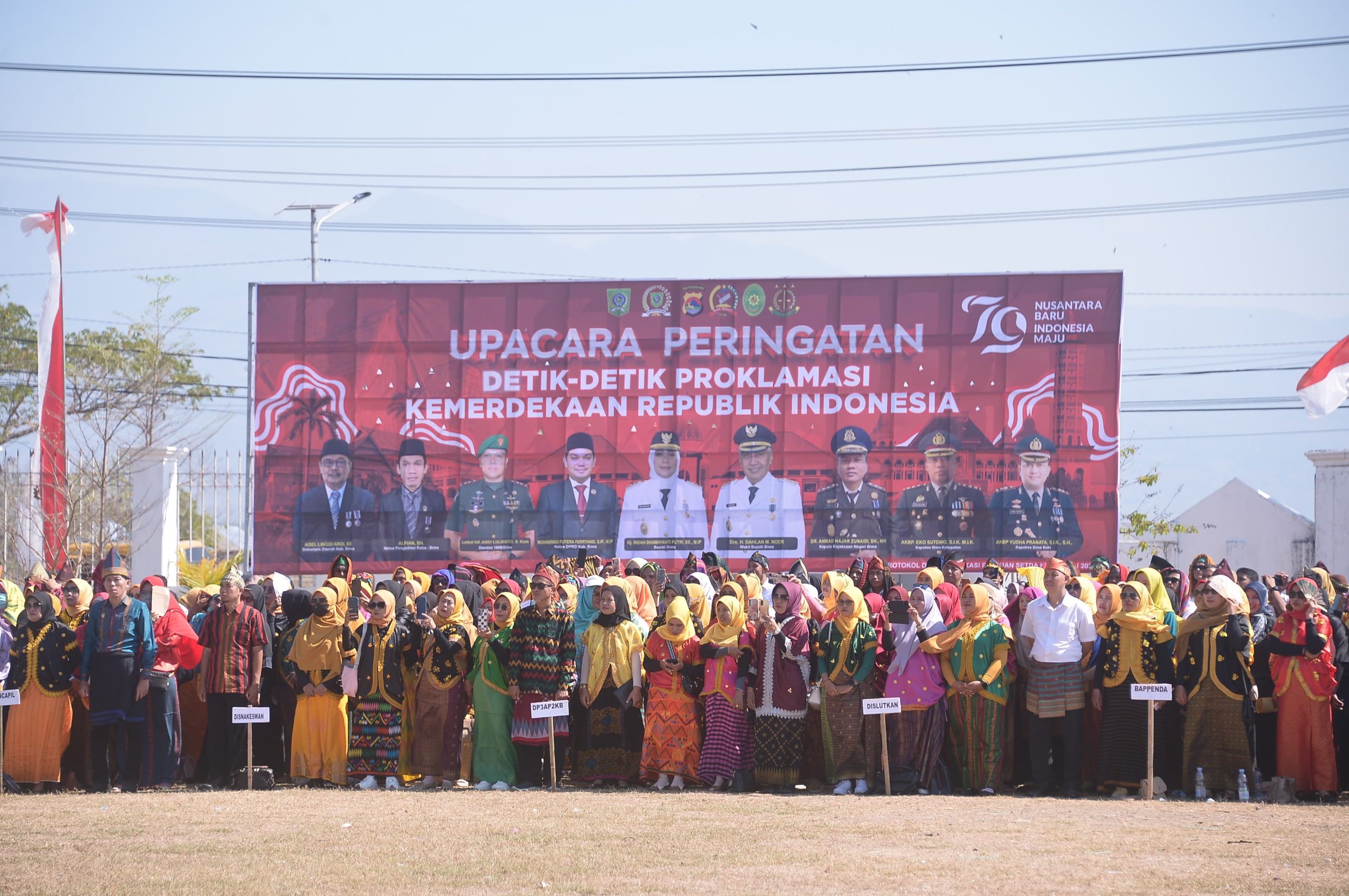 KeizalinNews.comKabupaten Bima. Upacara peringatan Detik-detik Proklamasi Kemerdekaan Republik Indonesia Ke-79 Tingkat Kabupaten Bima yang berlangsung Sabtu (17/8) di Lapangan Upacara Kantor Bupati Bima berlangsung khidmat dan meriah dengan para tamu undangan dan peserta upacara yang dominan pakaian adat Bima.