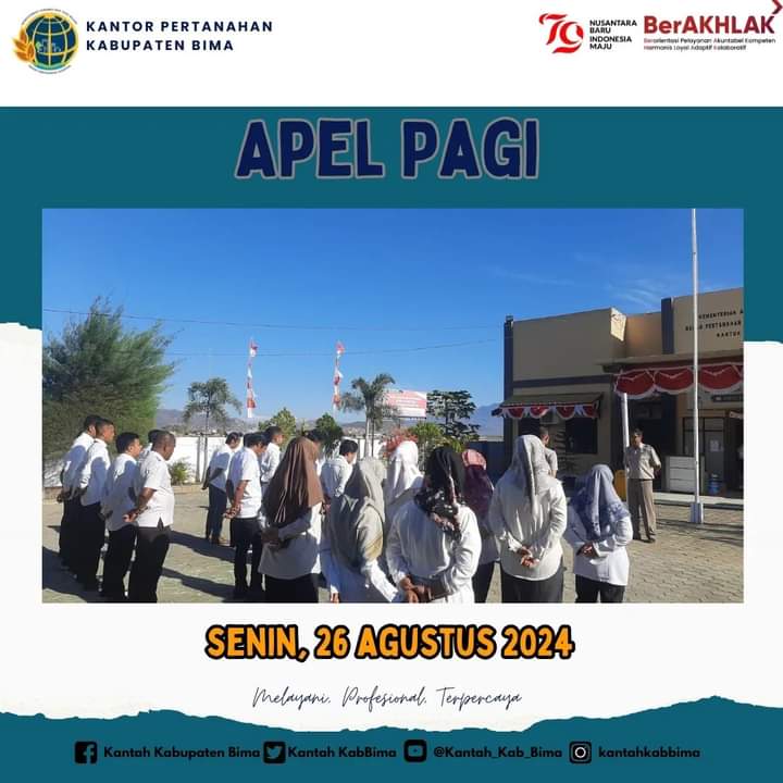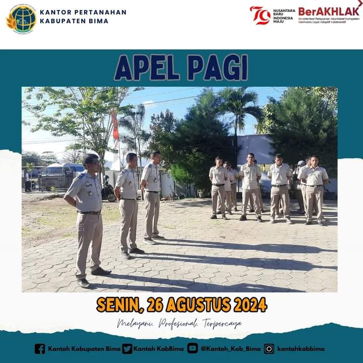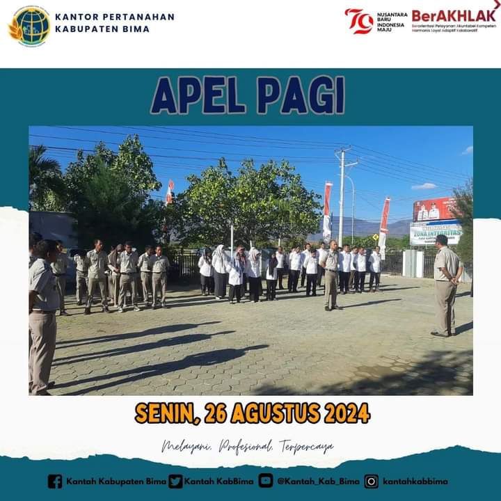 Kegiatan apel pagi ini merupakan salah satu upaya KANTAH Kabupaten Bima dalam membangun disiplin dan kebersamaan, serta sebagai sarana untuk menyampaikan informasi dan arahan langsung kepada seluruh Jajarannya (Red)