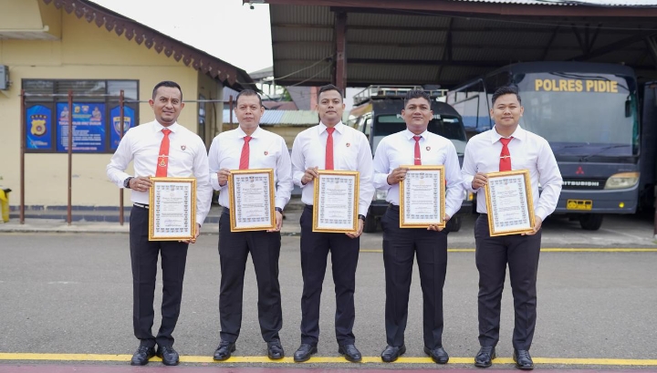 Penghargaan tersebut diserahkan Kapolres Pidie AKBP Jaka Mulyana, SIK, MIK dalam Apel Pagi di Lapangan Apel Mapolres Pidie, Selasa (27/08/2024).