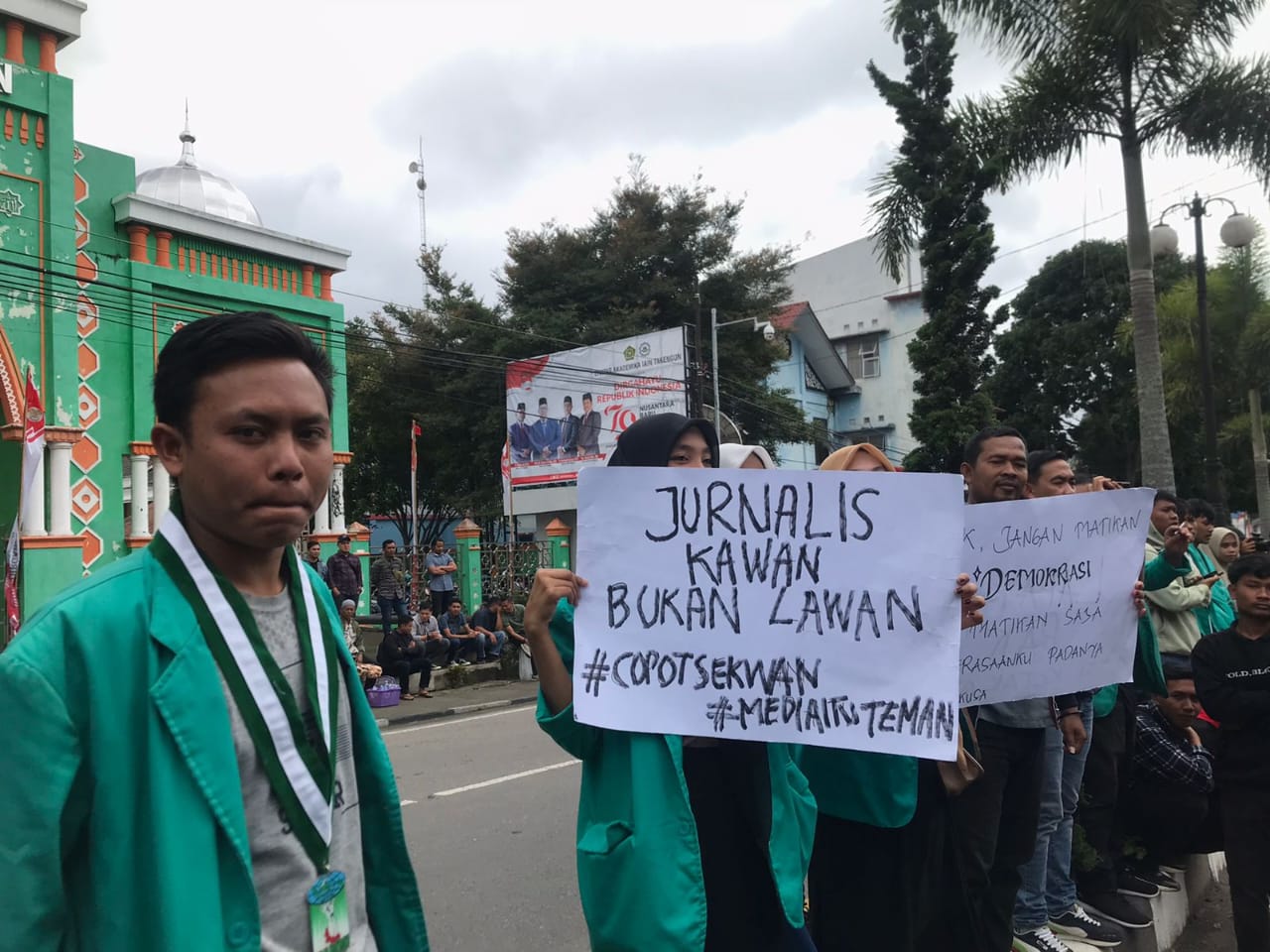 Dalam aksi yang di lakukan para mahasiswa itu setelah pelantikan 30 anggota DPRK Dewan Perwakilan Rakyat pada senin (26/8) minta copot (sekwan) tampak dalam poster pendemo dari jabatannya.