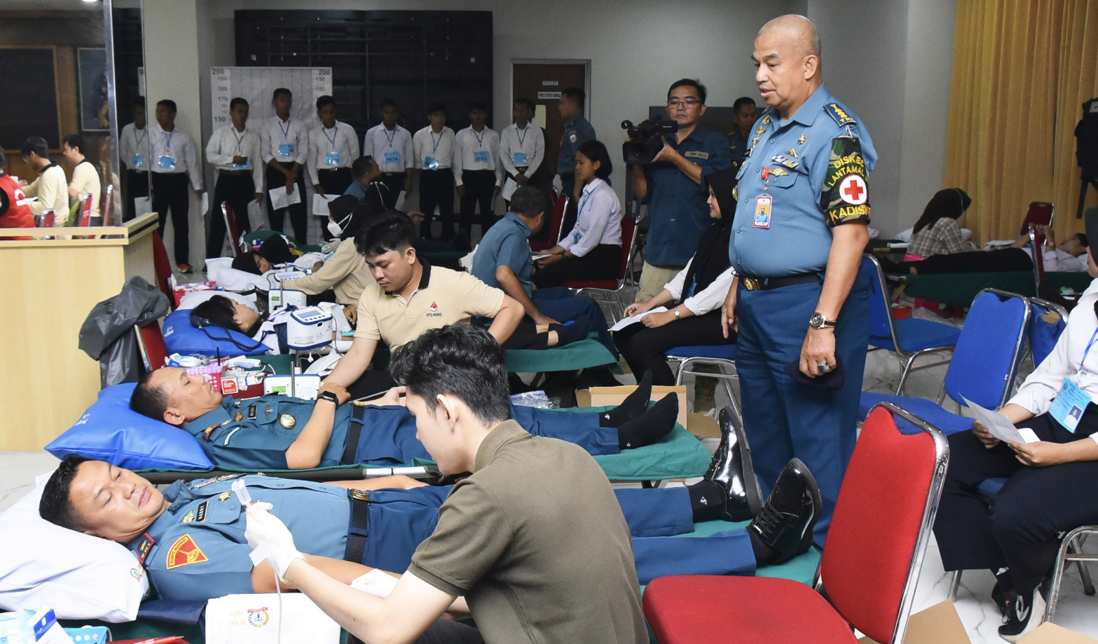 KeizalinNews.Online Jakarta — Komandan Pangkalan Utama TNI Angkatan Laut (Danlantamal) III Jakarta Brigjen TNI (Mar) Harry Indarto, S.E., M.M. selaku Ketua Panitia Daerah (Panda) Lantamal III Jakarta meninjau sekaligus mengikuti kegiatan donor darah bersama para Calon Bintara (Caba) Prajurit Karier (PK) Pria/Wanita TNI Angkatan Laut gelombang II TA 2024 dan Calon Tamtama (Cata) PK TNI Angkatan Laut gelombang II TA 2024 didampingi Wadan Lantamal III Jakarta Kolonel Laut (P) Whisnu Kusardianto, S.E., M.H. bertempat di Gedung Serbaguna (GSG) Mako Lantamal III Jakarta Jl. Gunung Sahari No. 2 Ancol, Jakarta Utara, Kamis (29/08/2024).