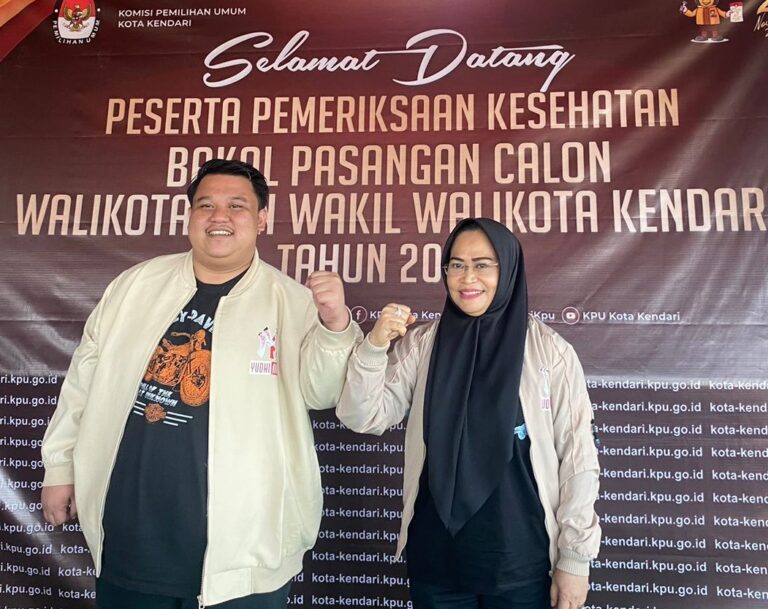 Keizalinnews.com – Kota Kendari – Setelah menjalani beberapa pemeriksaan tim medis RSUD Kendari, kini Periksa Kesehatan, Yudhi-Nirna selesai dan minta dukungan masyarakat Kota Kendari kedua paslon tersebut mendaftarkan diri di KPU Kota Kendari, pada Kamis (29/8) pekan lalu.