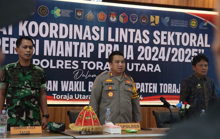 Rapat koordinasi yang digelar dipimpin oleh Kapolres Toraja Utara AKBP Zulanda, S.IK., M.Si, Dandim 1414/Tana Toraja Letkol Arm. Bani Kelana Sepang, dan Sekda Kabupaten Toraja Utara Salvius Pasang, S.P., M.P.