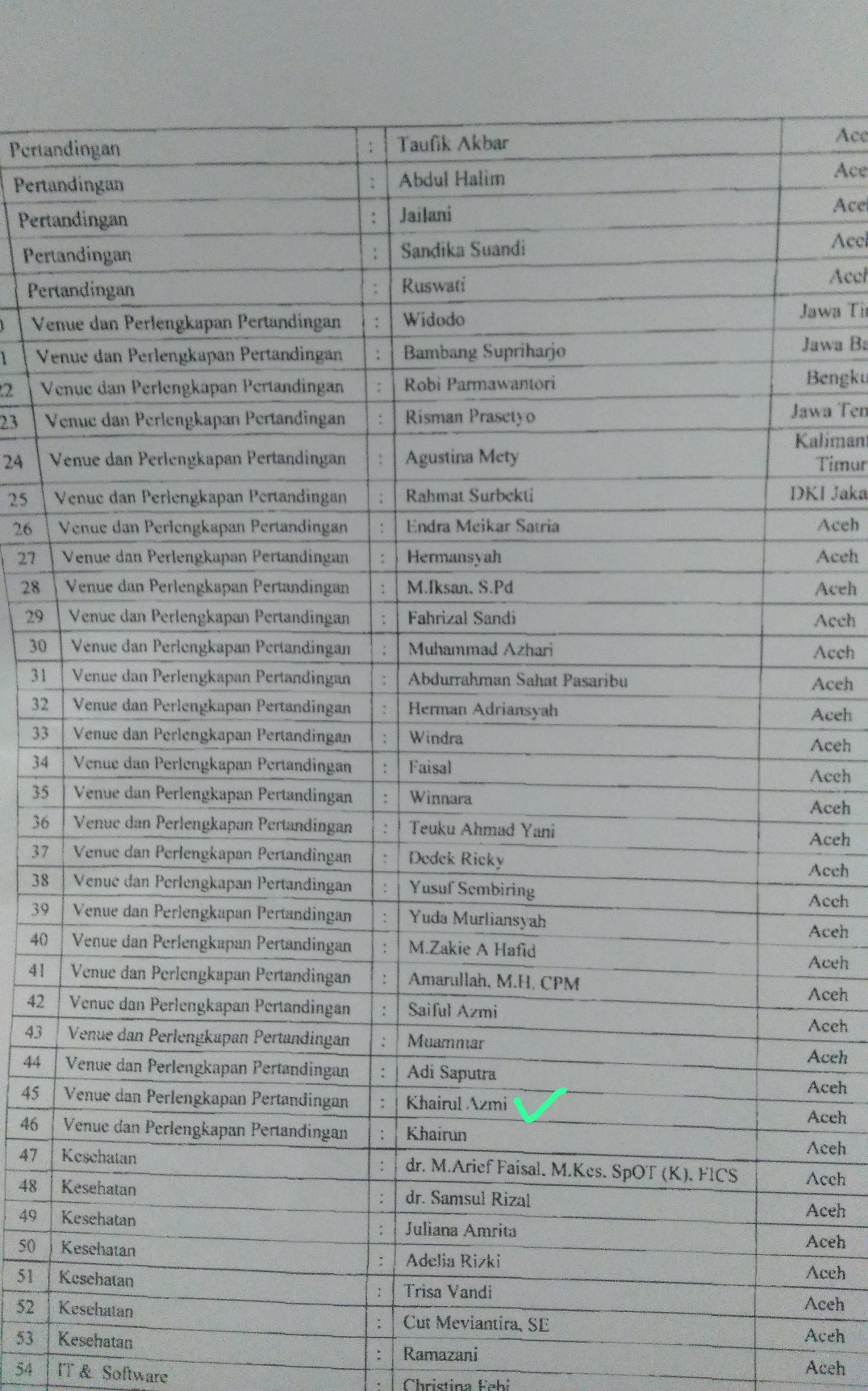 Sementara diawal SK pertama yang dikeluarkan pada tanggal 07 Juli 2024 lalu ada tertera nama Khairul Azmi, namun disaat SK kedua pada tanggal 31 Agustus 2024 nama Khairul Azmi sudah tidak ada, padahal dari seluruh pengcab diambil 2 orang sebagai panitia, namun karna namanya ada tertera di SK awal dalam pengurus panitia dia tetap hadir ke Banda Aceh.