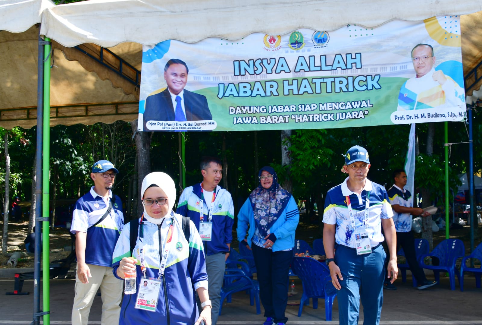 Jabar hattrick sendiri merupakan jargon khas atlet dan ofisial menuju target Jabar juara umum ketiga kali berturut – turut.