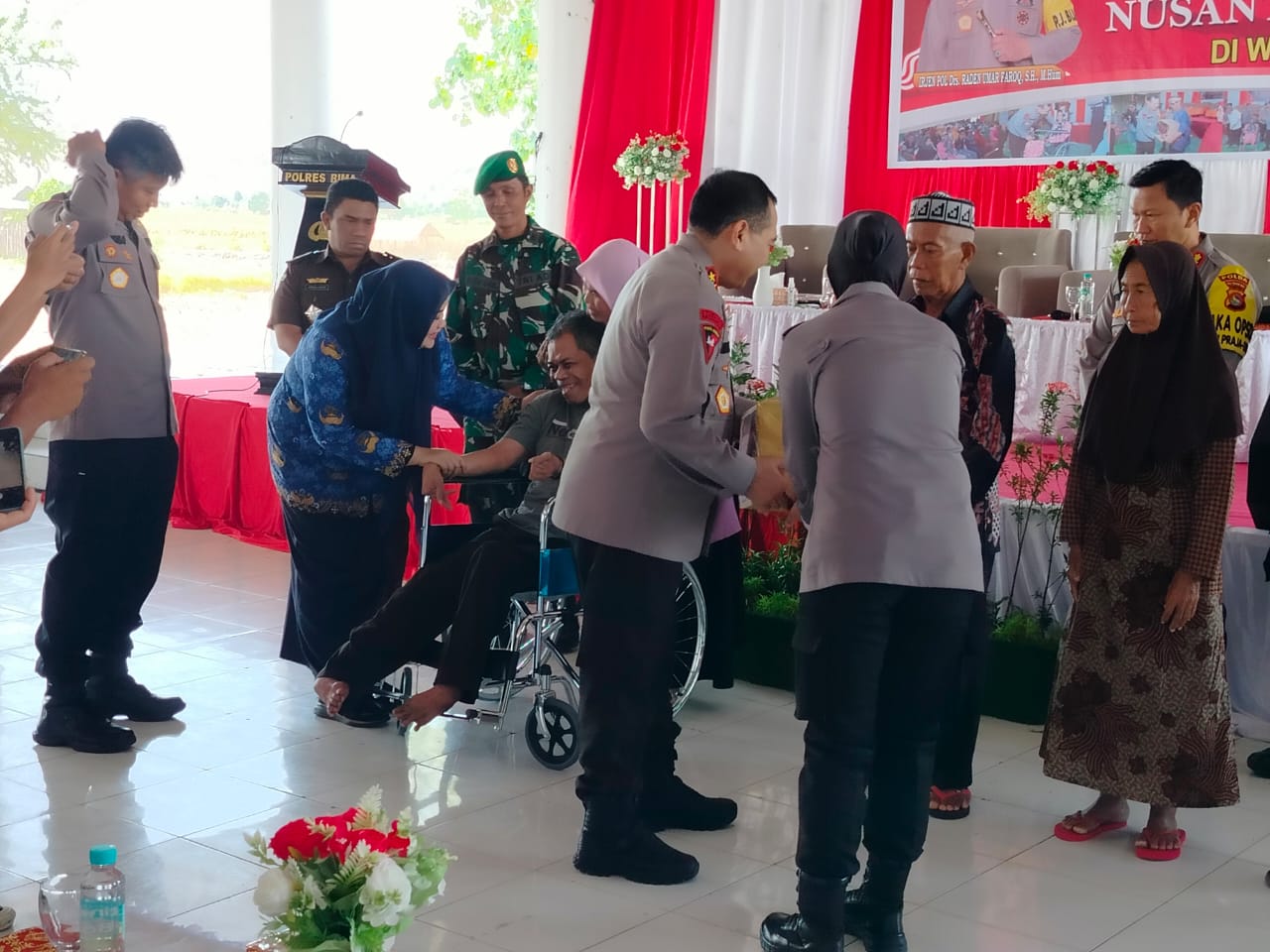 Pada kesempatan tersebut, Kapolda menyerahkan bantuan kursi roda kepada warga penyandang disabilitas dan penyerahan sejumlah 70 paket kepada warga setempat.