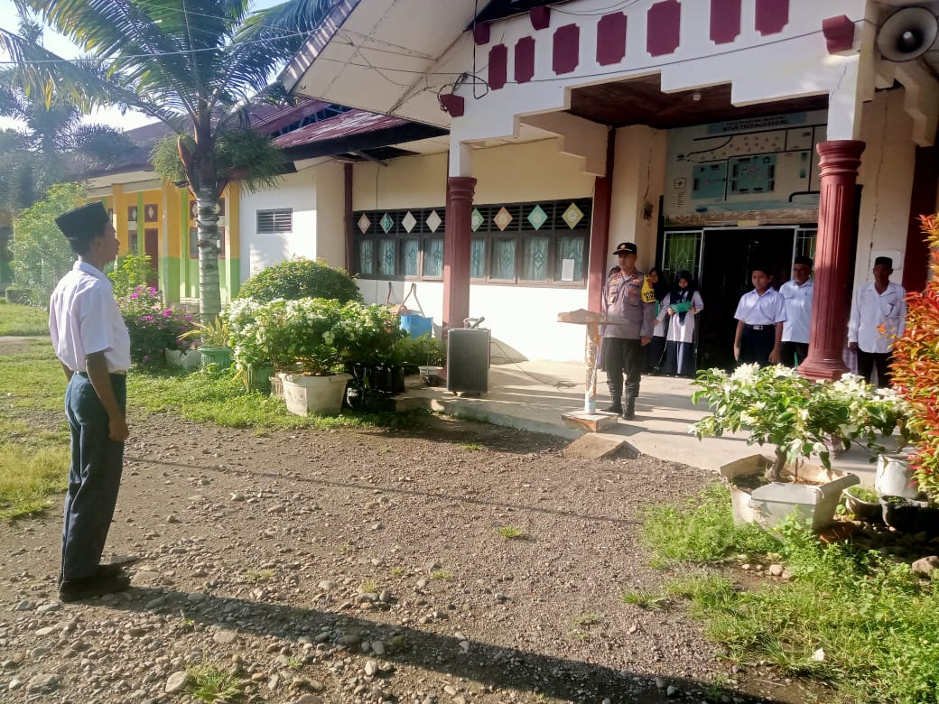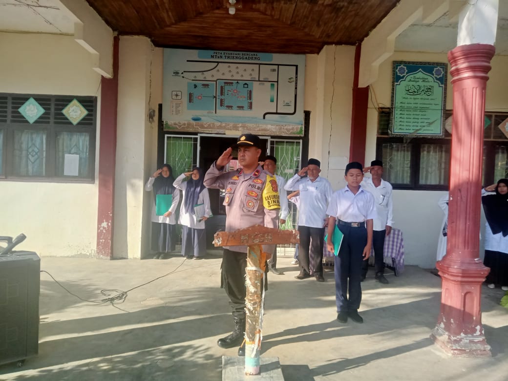 Kasat Binmas Polres Pidie Jaya, Ipda Zuhri Yusuf, S.H., hadir sebagai Pembina Upacara dalam rangka program Sawee Sikula di MTsN Trienggadeng.
