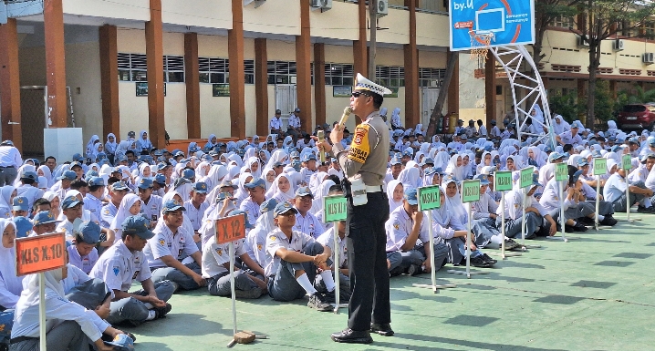 “Kami hadir di sekolah ini, Tujuannya agar para Siswa-Siswi paham dengan aturan berlalu lintas. Kemudian mencegah para pelajar terlibat kegiatan negatif, seperti balap liar dan sebagainya.” Ucap AKP Sarifuddin