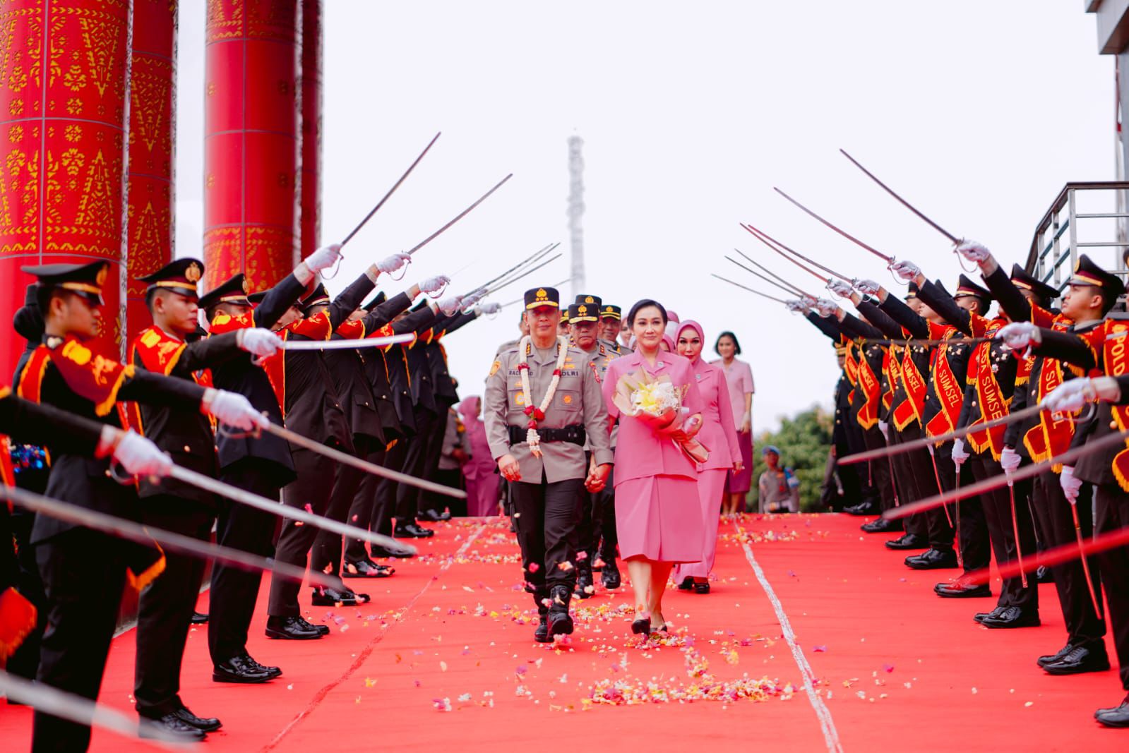 Dilepas Dengan Tradisi Pedang Pora, Komjen A Rachmad Wibowo dan Istri Tak Kuasa Meneteskan Air Mata.