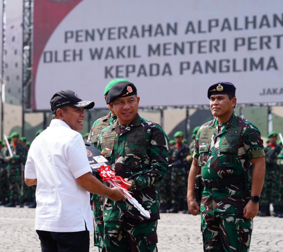 KeizalinNews.Online Jakarta — Panglima TNI Jenderal TNI Agus Subiyanto, S.E., M.Si. `menerima penyerahan Alat Peralatan Pertahanan dan Keamanan (Alpalhankam) yang dilakukan secara simbolis oleh Wakil Menteri Pertahanan (Wamenhan) RI Muhammad Herindra, M.A., M.Sc., bertempat di Silang Monas, Jakarta Pusat, Rabu (02/10/2024).