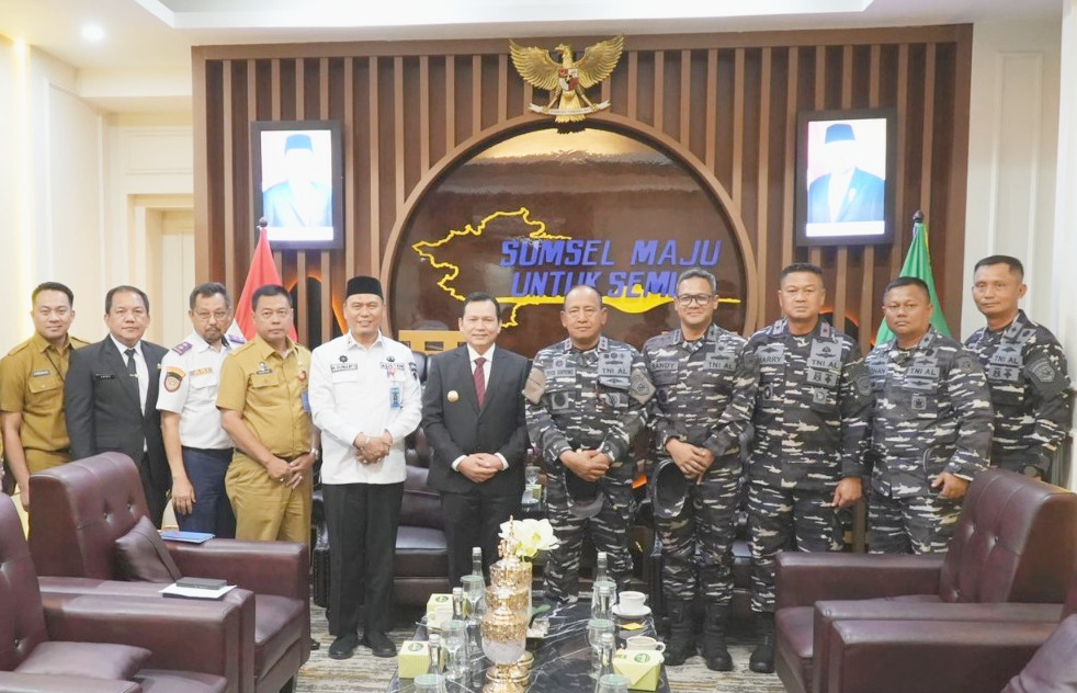 KeizalinNews.Online Palembang — Komandan Pangkalan Utama TNI Angkatan Laut (Danlantamal) III Jakarta Brigjen TNI (Mar) Harry Indarto, S.E., M.M. mendampingi Panglima Komando Armada (Pangkoarmada) I Laksda TNI Dr. Yoos Suryono Hadi, M.Tr.(Han)., M.Tr.Opsla., CHRMP. melaksanakan courtesy call (kunjungan kehormatan) kepada Pj. Gubernur Sumatera Selatan Elen Setiadi, S.H., M.S.E., bertempat di Griya Agung Palembang Kantor Gubernur Sumatera Selatan Jl. Kapten A. Rivai No. 3 Palembang, Sumatera Selatan, Selasa (08/10/2024).