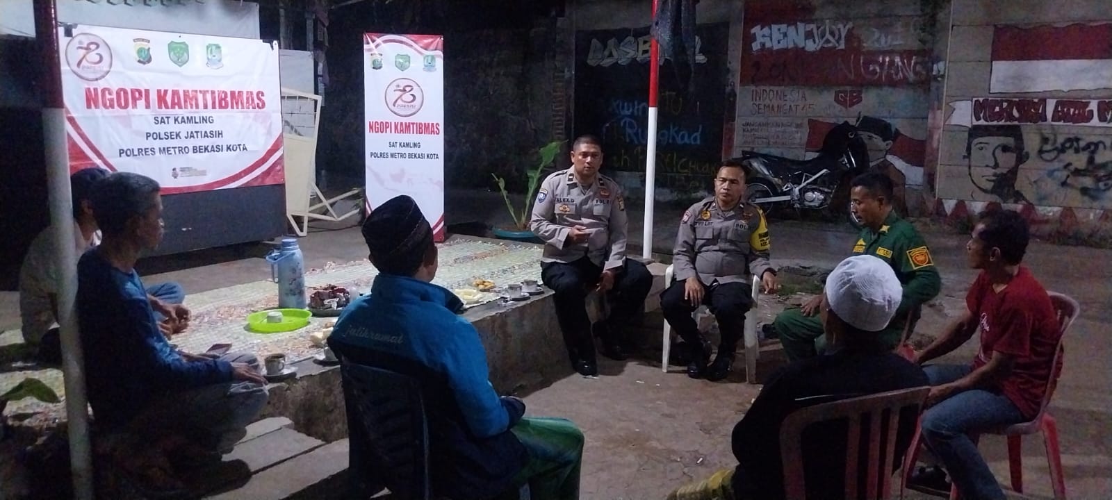 KeizalinNews.Online Kota Bekasi — Bhabinkamtibmas Kelurahan Jatikramat Polsek Jatiasih di Kota Bekasi, Aipda Setyo Wardoyo, SE, bersama dengan Ipda Alexander Bete, Panit 1 Binmas Jatiasih, mengadakan kegiatan Ngopi Kamtibmas di Kampung Jatikramat Rt 07 Rw 09 Kelurahan Jatikramat, Kecamatan Jatiasih, Kota Bekasi. Jumat (11/10/2024).
