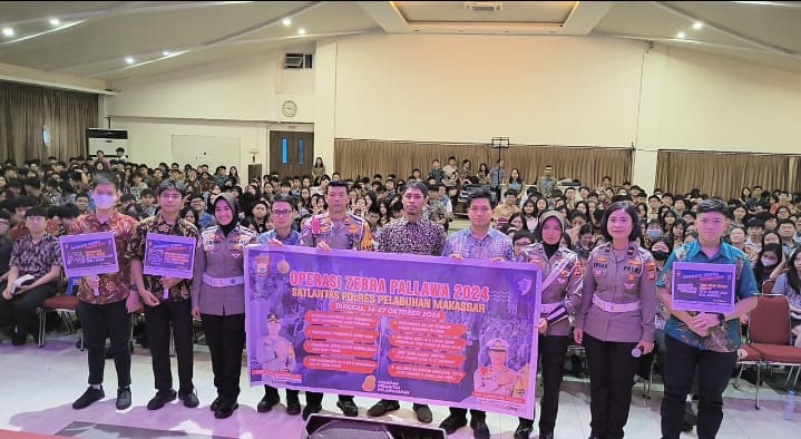 Keizalinnews.Online| Makasar Sulsel-: Satlantas polres pelabuhan makassar pada Hari Keempat pelaksanaan Operasi Zebra Pallawa-2024 melaksanakan Giat Police Goes To School di SMA ZION Kota Makassar. Kamis (17/10/2024)