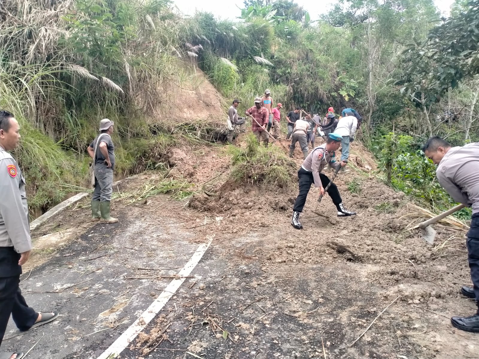 Kemudian Eriadi mengungkapkan, Personel Polsek dan Babinsa serta warga Kampung Syura Jadi masih melakukan pembersihan secara manual di badan jalan area longsor untuk bisa dilewati kendaraan roda 2.