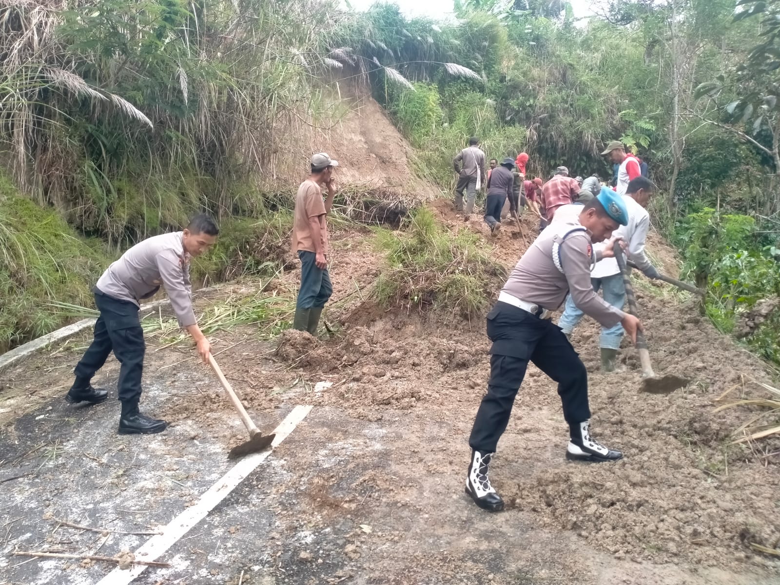 Kemudian Eriadi mengungkapkan, Personel Polsek dan Babinsa serta warga Kampung Syura Jadi masih melakukan pembersihan secara manual di badan jalan area longsor untuk bisa dilewati kendaraan roda 2.