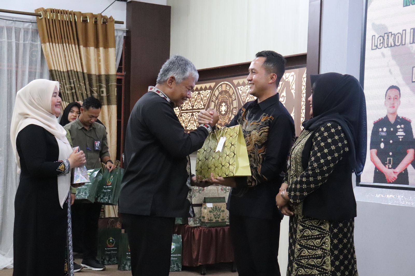 Dalam acara tersebut tampak Hadir Pj. Bupati Aceh Tengah, Subhandy, AP, M.Si, Letkol Inf Kurniawan Agung SancoyoSE.M.Han, Dandim 0106/ Aceh Tengah Pejabat Baru Letkol Inf. Raden Herman Sasmita, Kapolres Aceh Tengah, diwakili Wakapolres Aceh Tengah, Kompol Samsir, SH, Plh. Sekda Kab. Aceh Tengah, Erwin Pratama, S.STP, M.Si dan tamu undangan.”-M,s