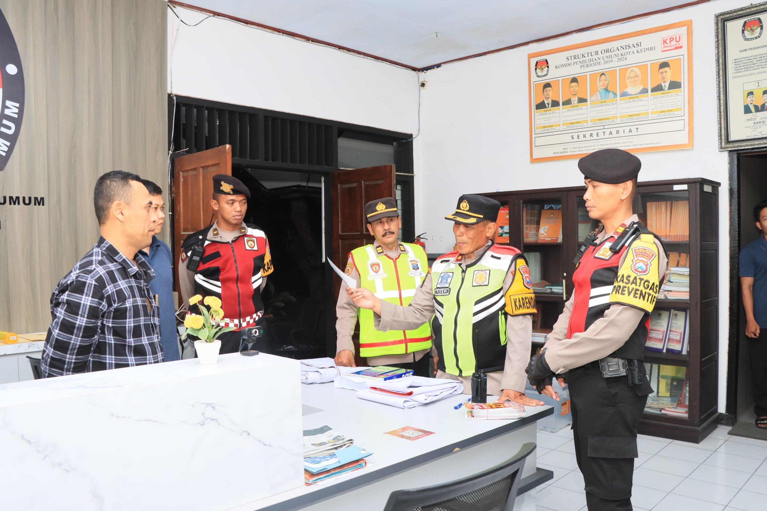 Patroli juga menjangkau lokasi-lokasi strategis seperti jalan sepi, hingga kantor Komisi Pemilihan Umum (KPU), kantor Bawaslu dan gudang KPU Kota Kediri.