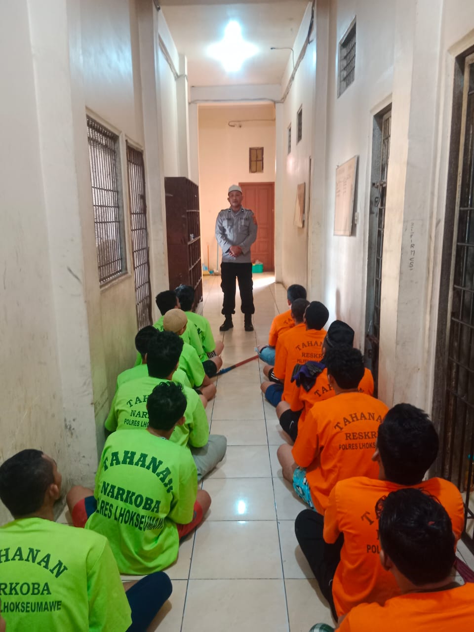 Keizalinnews.Online|Lhokseumawe-: Rutan Polres Lhokseumawe menjadi saksi pelaksanaan Bimbingan Rohani bagi para tahanan. Kegiatan ini dipimpin oleh petugas piket dari Sat Tahti, yang secara rutin dilaksanakan setiap Jumat dengan harapan dapat memberikan pencerahan kepada para tahanan mengenai kesalahan yang telah mereka perbuat.