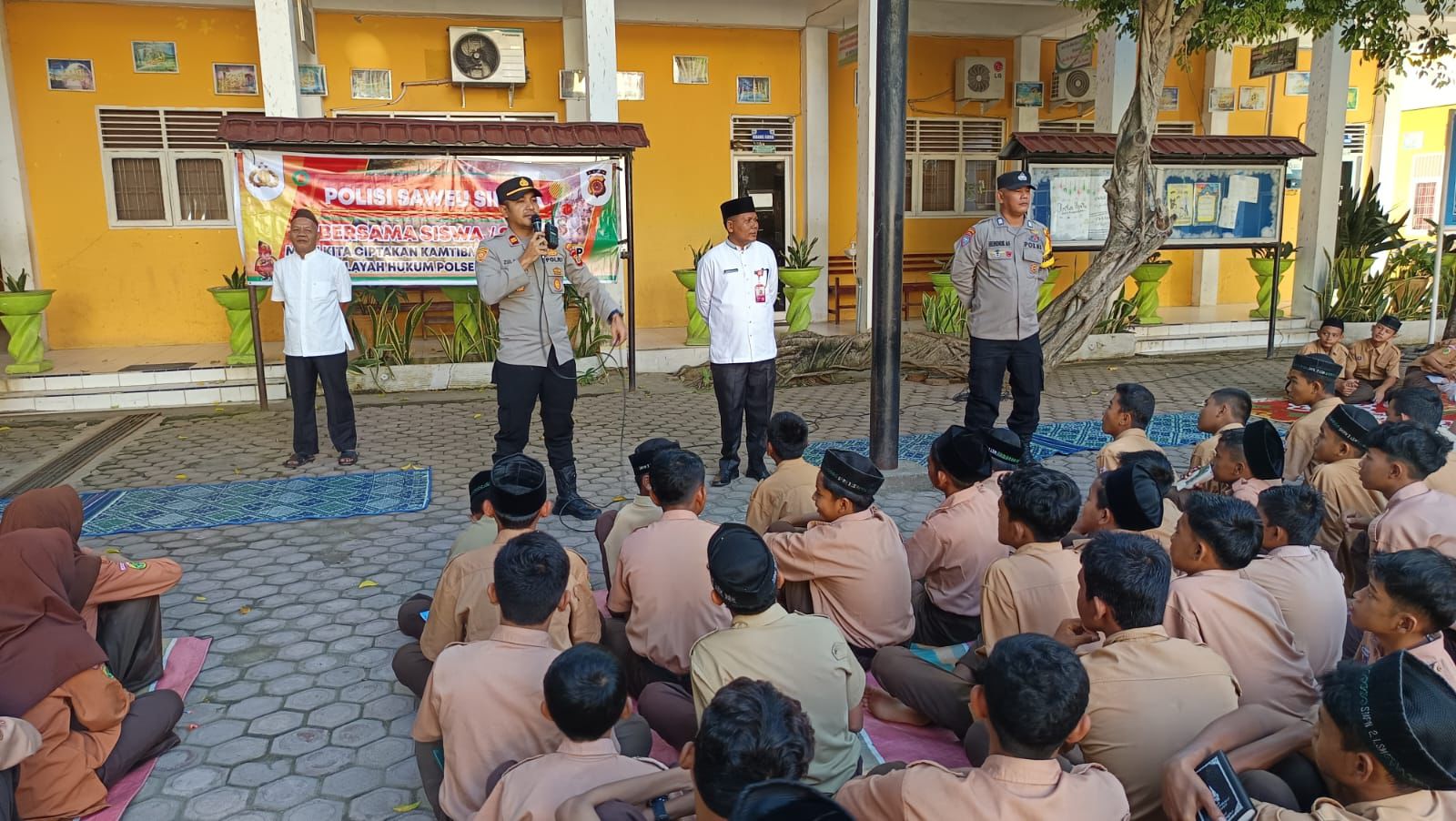Kapolsek Banda Sakti, Iptu Zul Akbar, SE, memberikan penyuluhan penting kepada 500 peserta yang terdiri dari siswa, guru, dan staf sekolah.