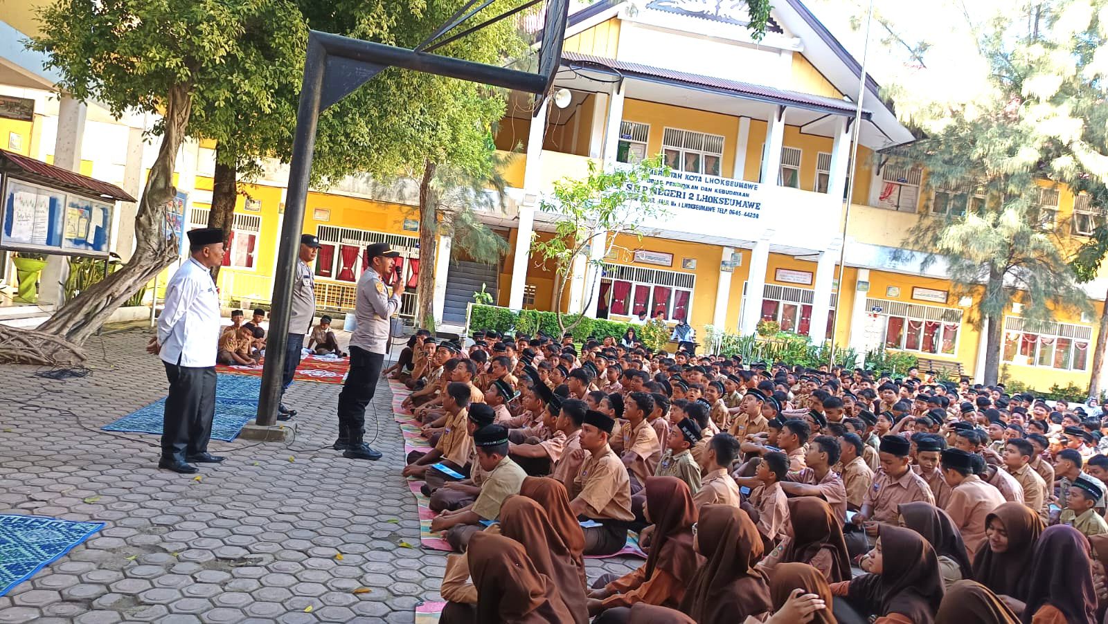 Keizalinnews.Online|Lhokseumawe-: Program “Polisi Saweu Sikula” Polsek Banda Sakti kembali hadir di SMP Negeri 2 Lhokseumawe, Jumat (25/10/2024) pagi.